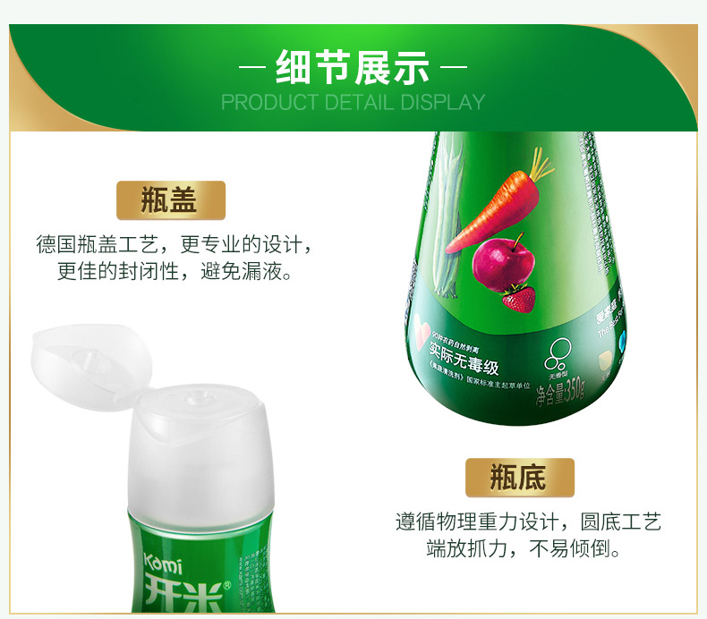 商品名称:开米 无毒浓缩kami蔬果净家用无香蔬菜水果清洗洗洁精 350g*3