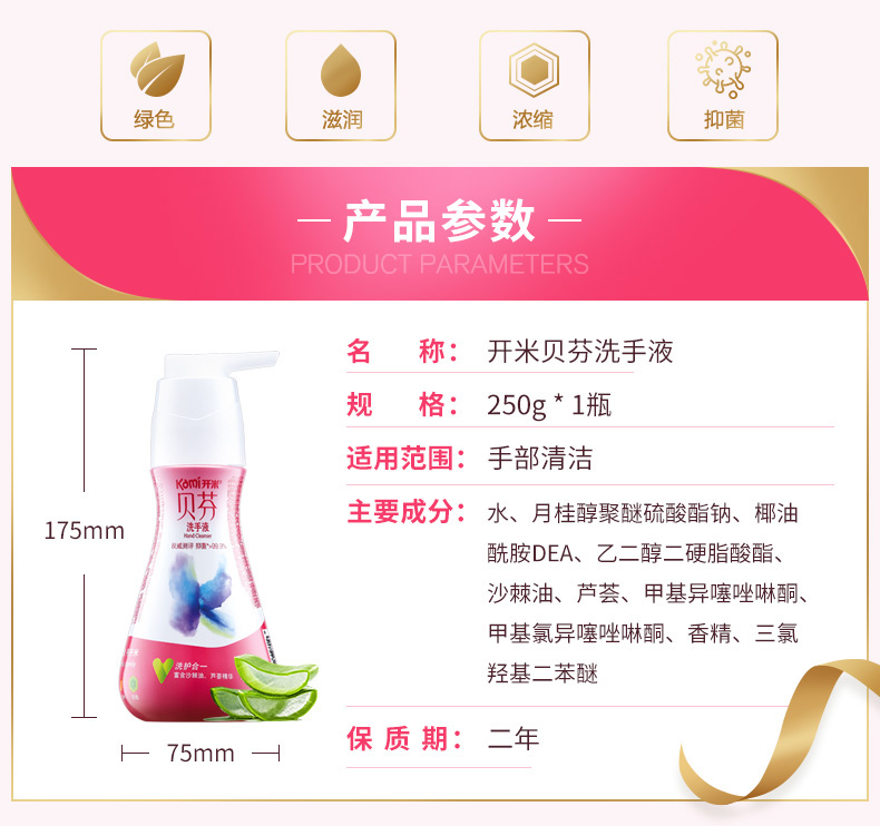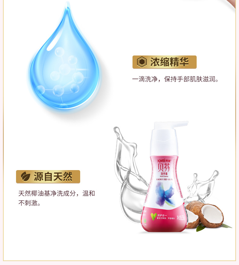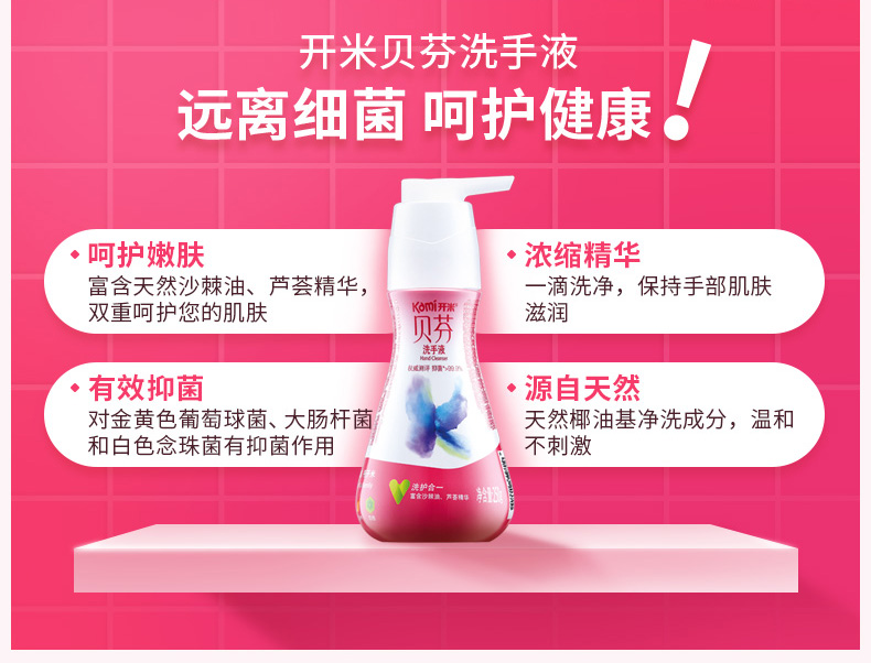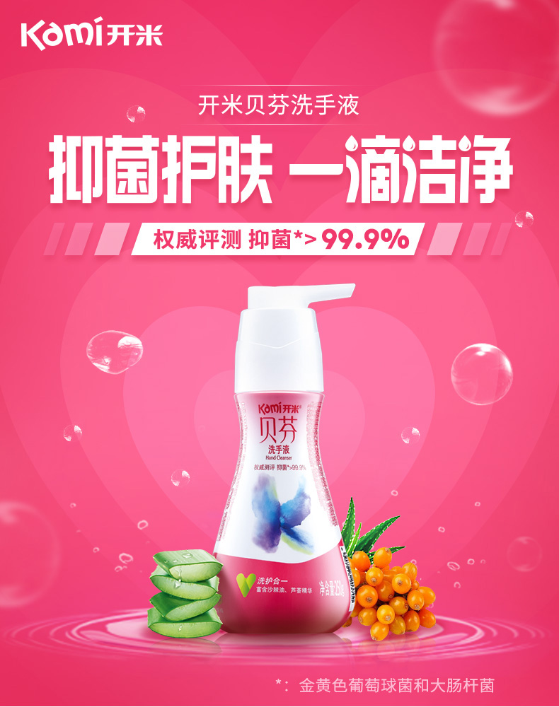 商品名称:开米 浓缩洗手液kami源自天然富含芦荟、沙棘油成分儿童抑菌250g