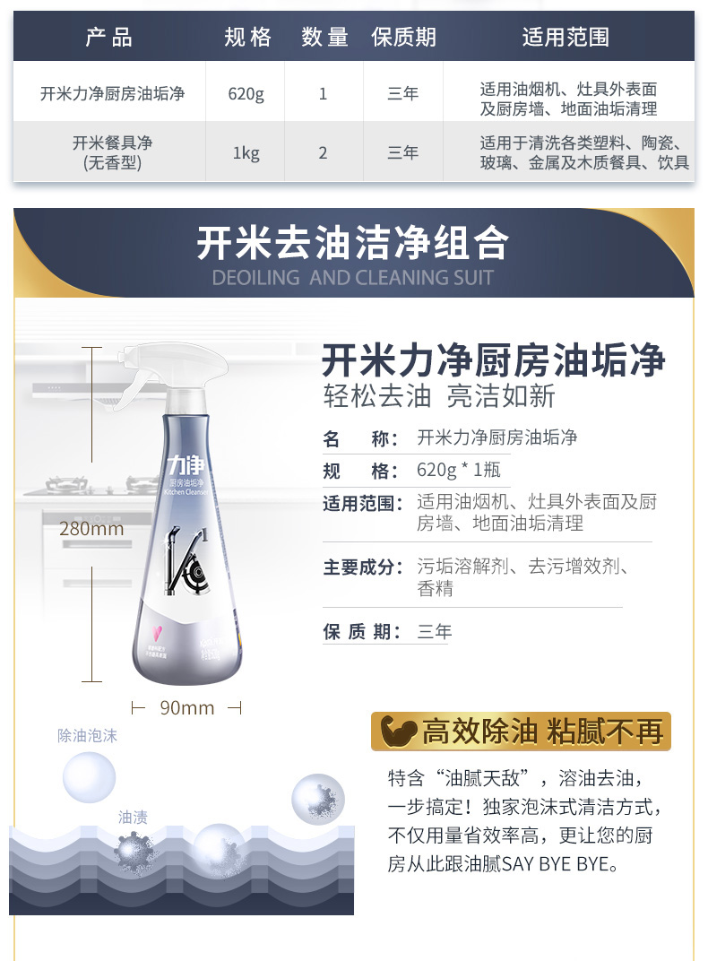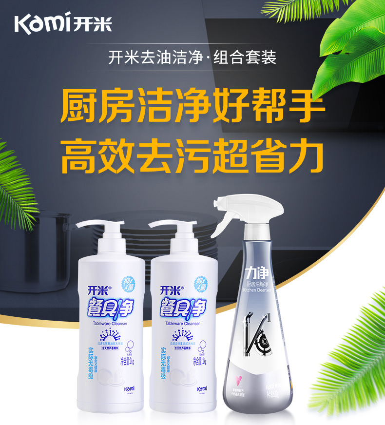 开米 无毒无香型餐具净1kg*2+开米厨房油垢净强力油污620g*1组合装