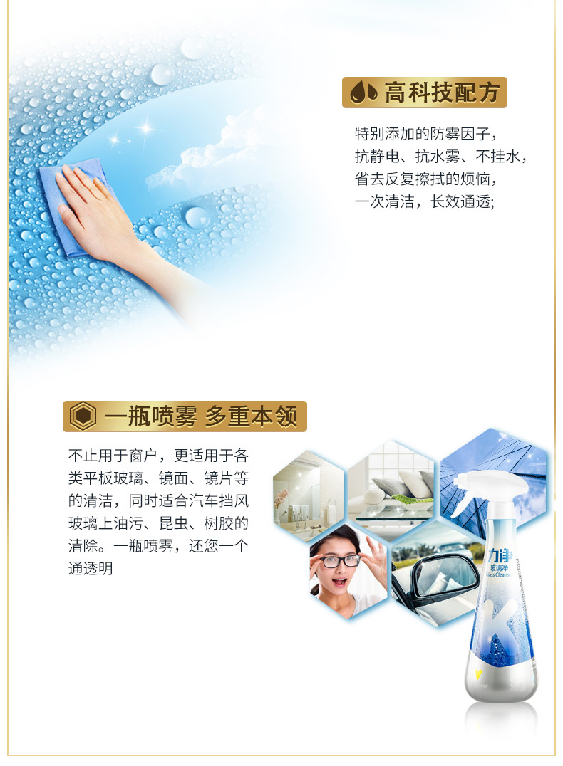 商品名称:开米 力净玻璃净 kami玻璃水淋浴房浴室窗户去水渍去污清洗剂620g