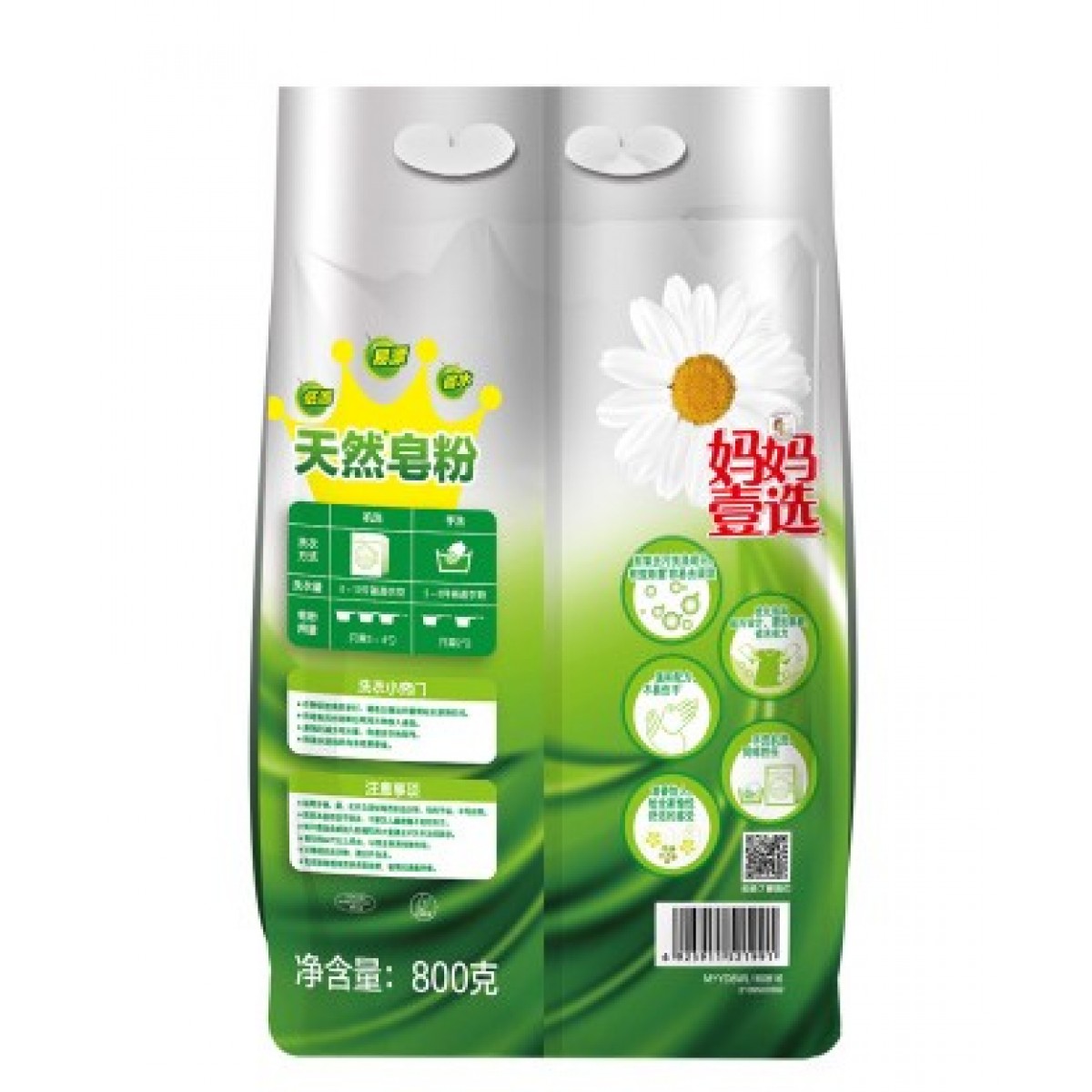 商品名称:妈妈壹选 银装天然洗衣皂粉800g香肥皂粉袋装