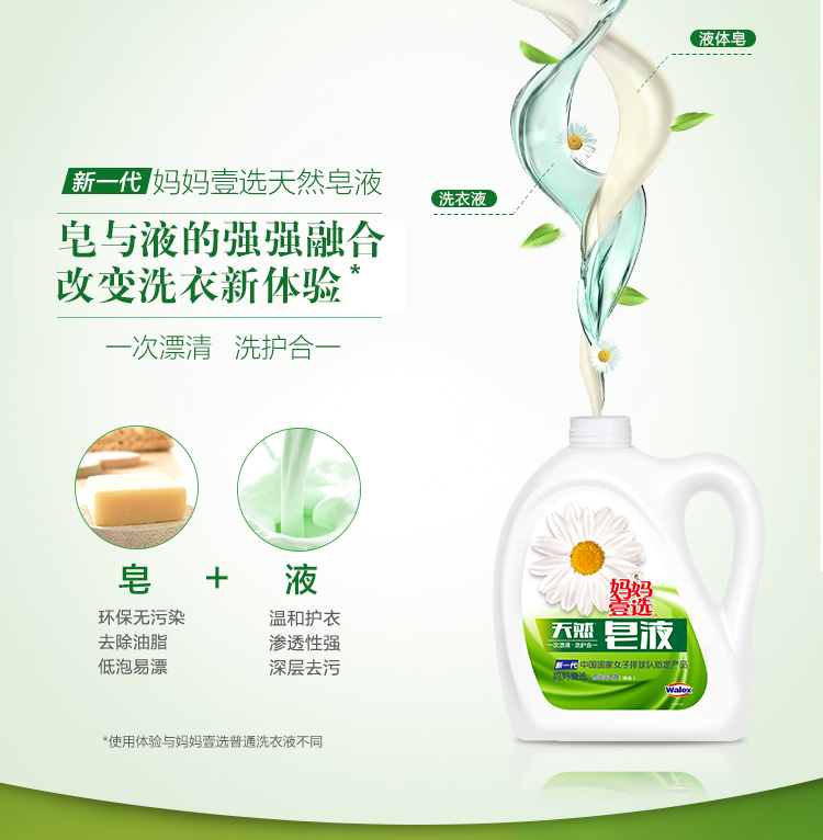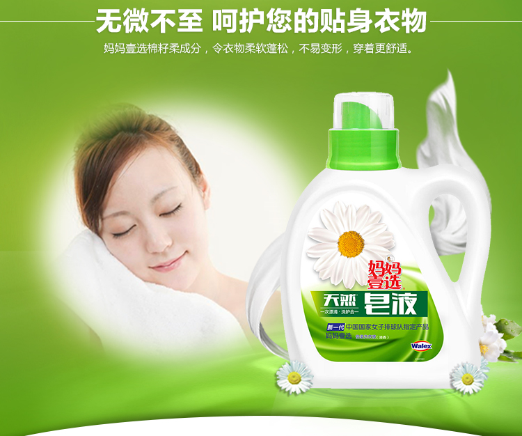 商品名称:妈妈壹选 一次漂清洗护合一天然洗衣皂液倍柔清香1000g