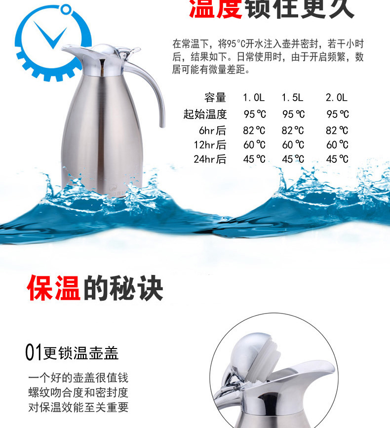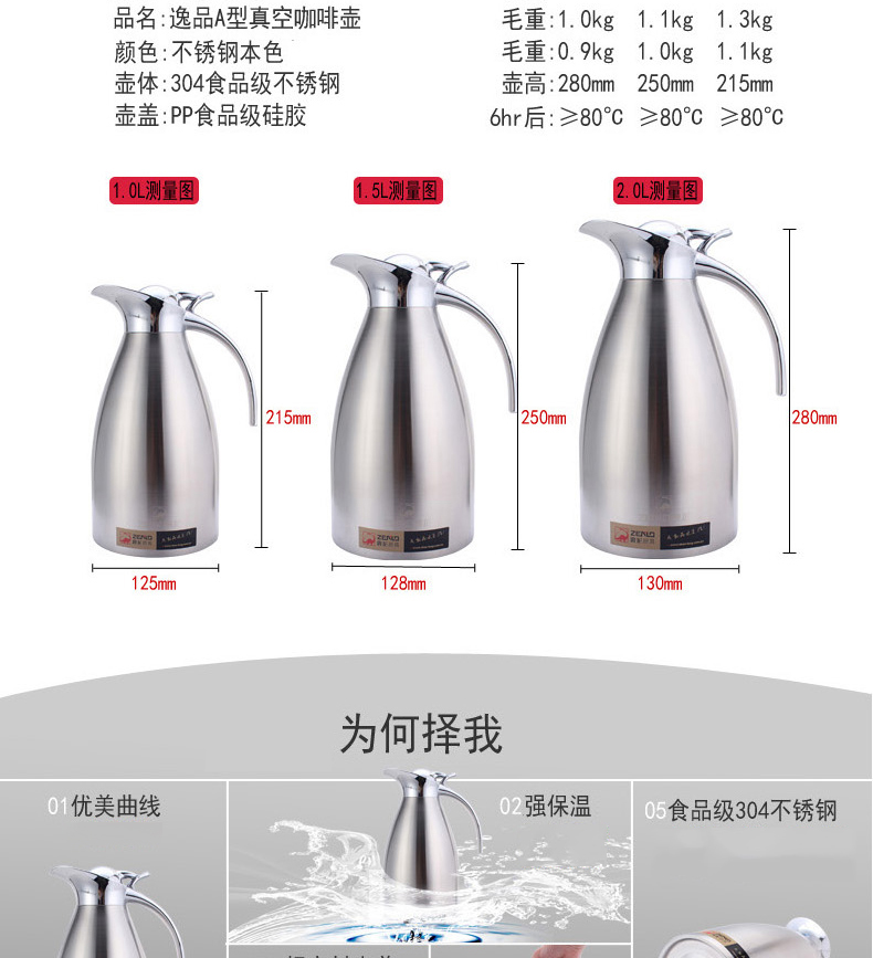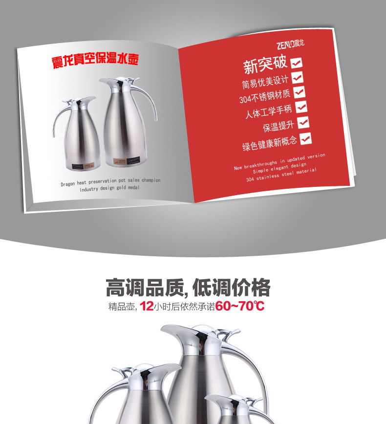 商品名称:震龙 家用真空保温壶 不锈钢胆真空大容量欧式热水瓶真空保温水壶 ZL-bW-008-15