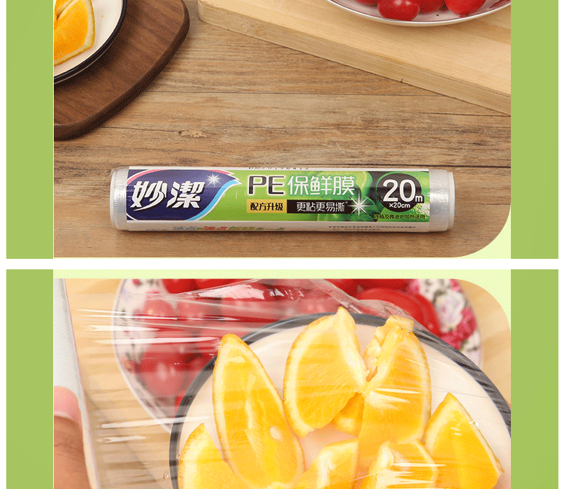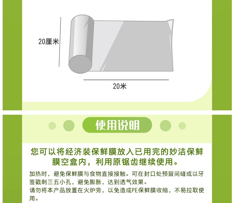 商品名称:妙洁 PE保鲜膜 20米 小碗经济装 M66SE食品保鲜