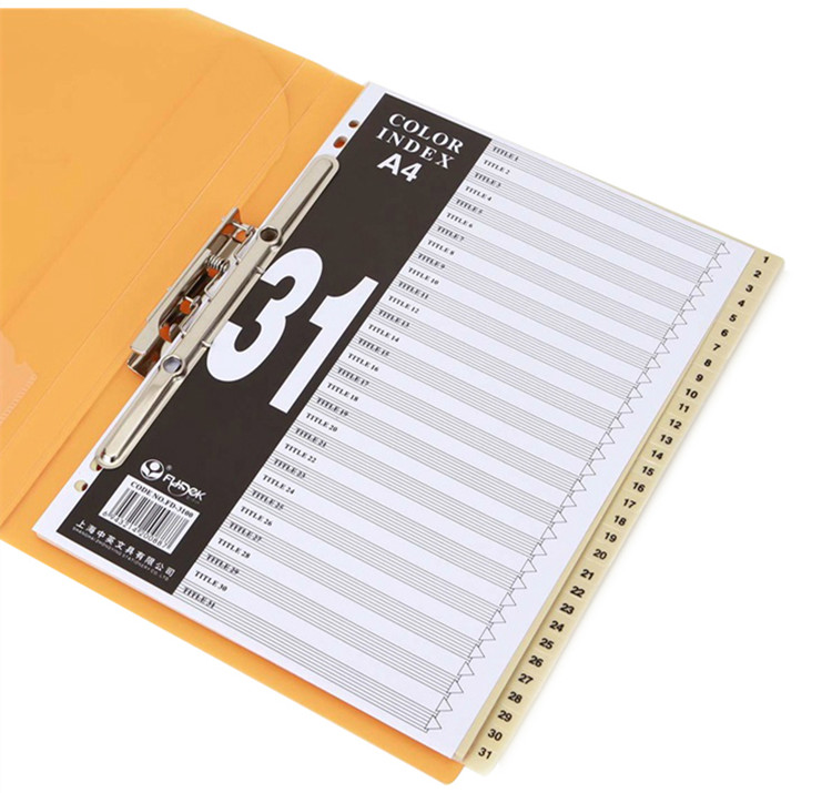 富得快 FD3100塑料 分类索引卡 PVC数字1-31页分页纸隔页纸分类纸