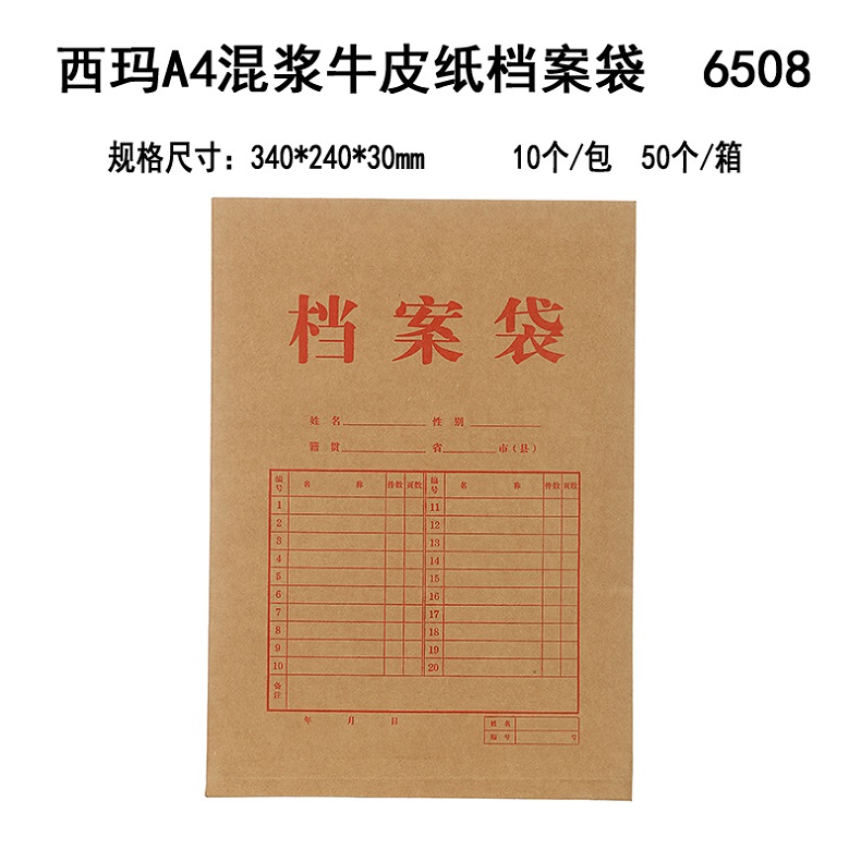 商品名称:西玛 A4混浆牛皮纸档案袋办公用品文件资料袋通用财务会计记账袋