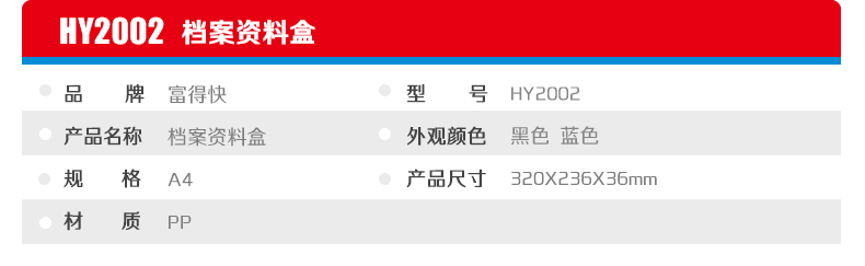 商品名称:富得快 2寸文件盒会计凭据盒人事档案盒A4文件盒存档文件盒HY2002