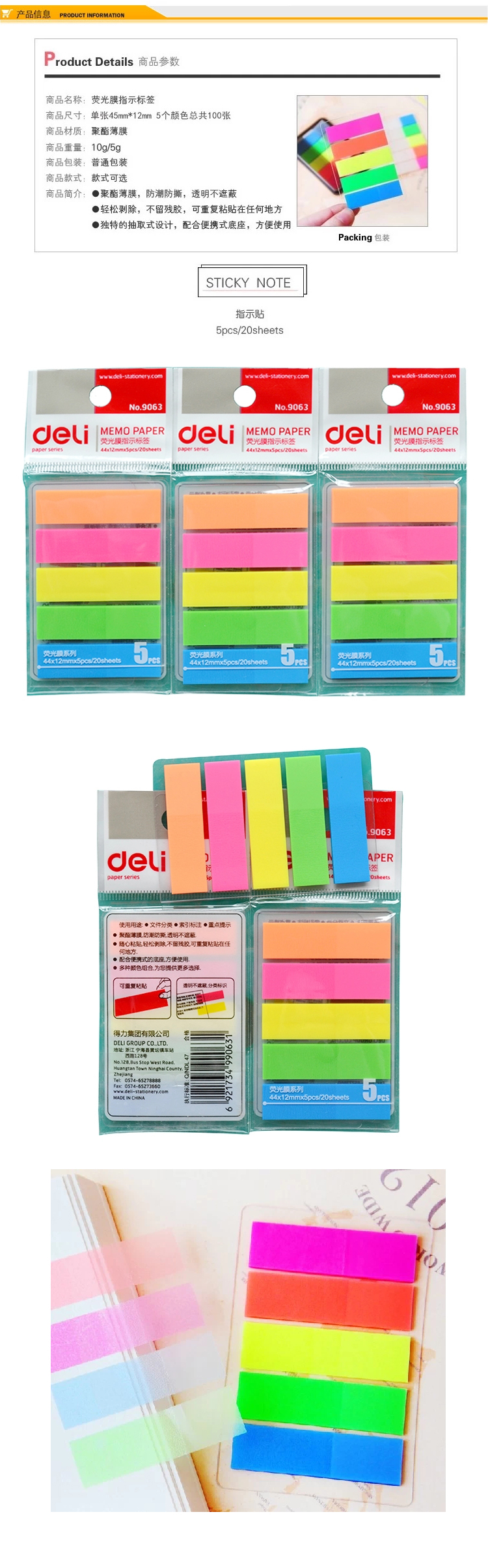 商品名称:得力 百事贴 9063 彩色荧光膜指示标签 分类贴 便利帖