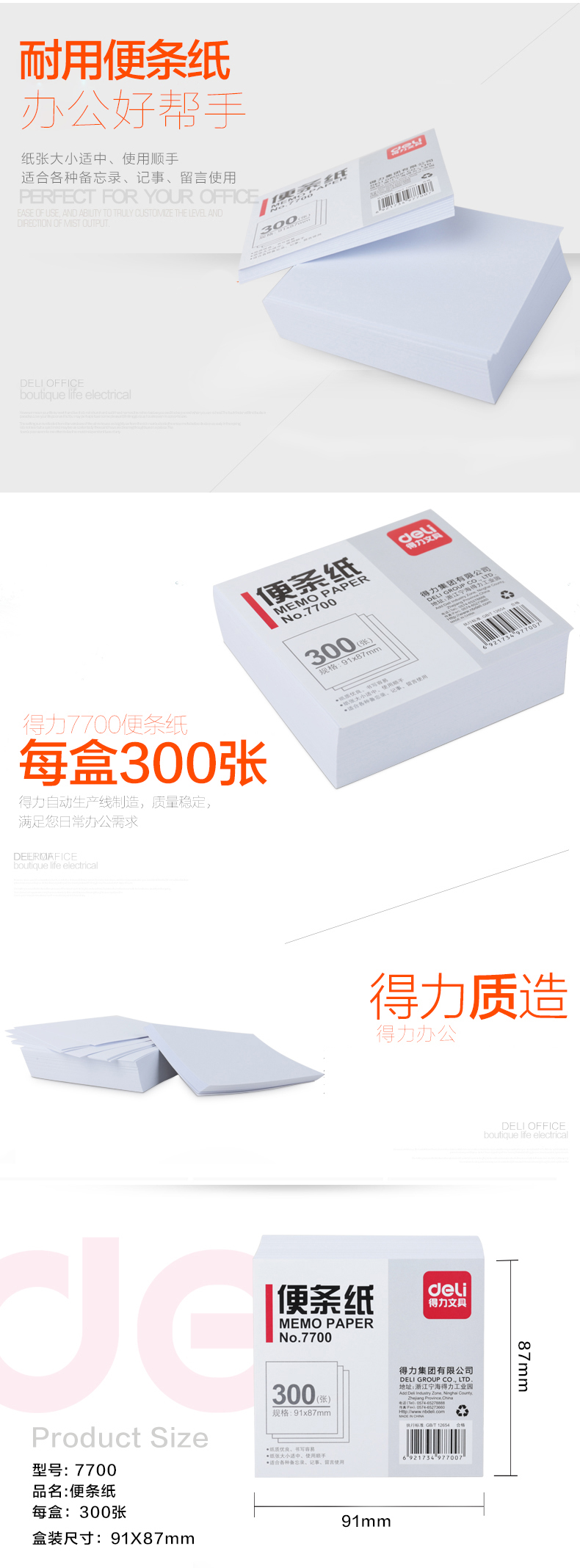 商品名称:得力 7700 便条纸便签纸本办公留言纸便利本白色方形