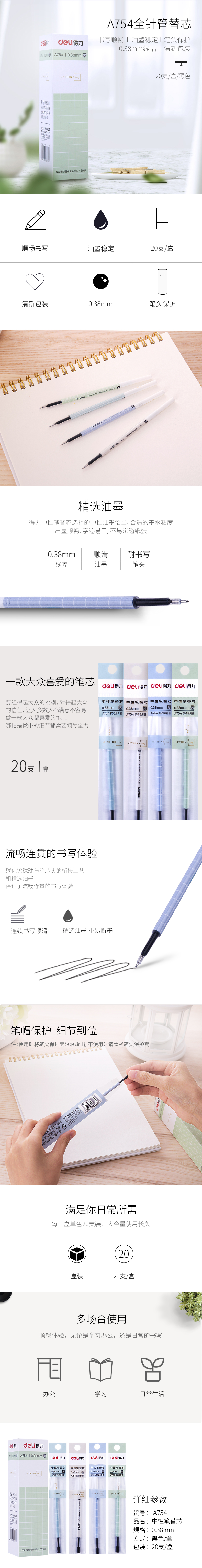 商品名称:得力 A754中性笔替芯学生用笔水笔按动笔替芯0.5mm全针管