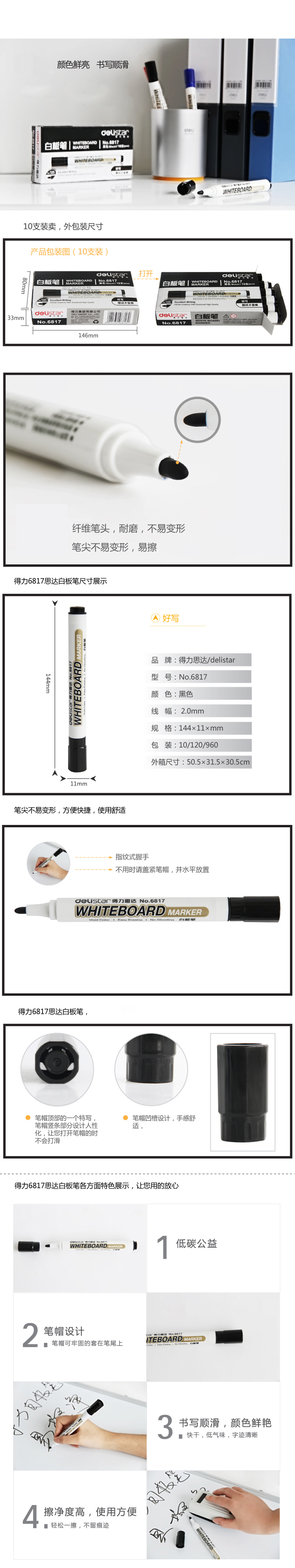 商品名称:得力 6817白板笔 水性可擦白板笔 易擦 黑板书写笔儿童画板笔办公