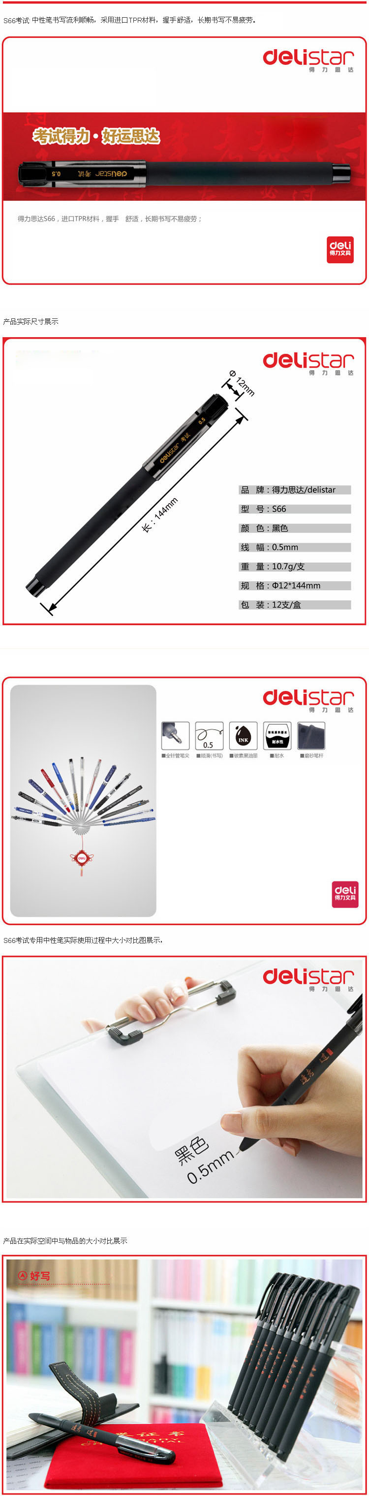 商品名称:得力 S66中性笔0.5mm 全针管商务办公签字水笔 笔芯碳素学生考试笔