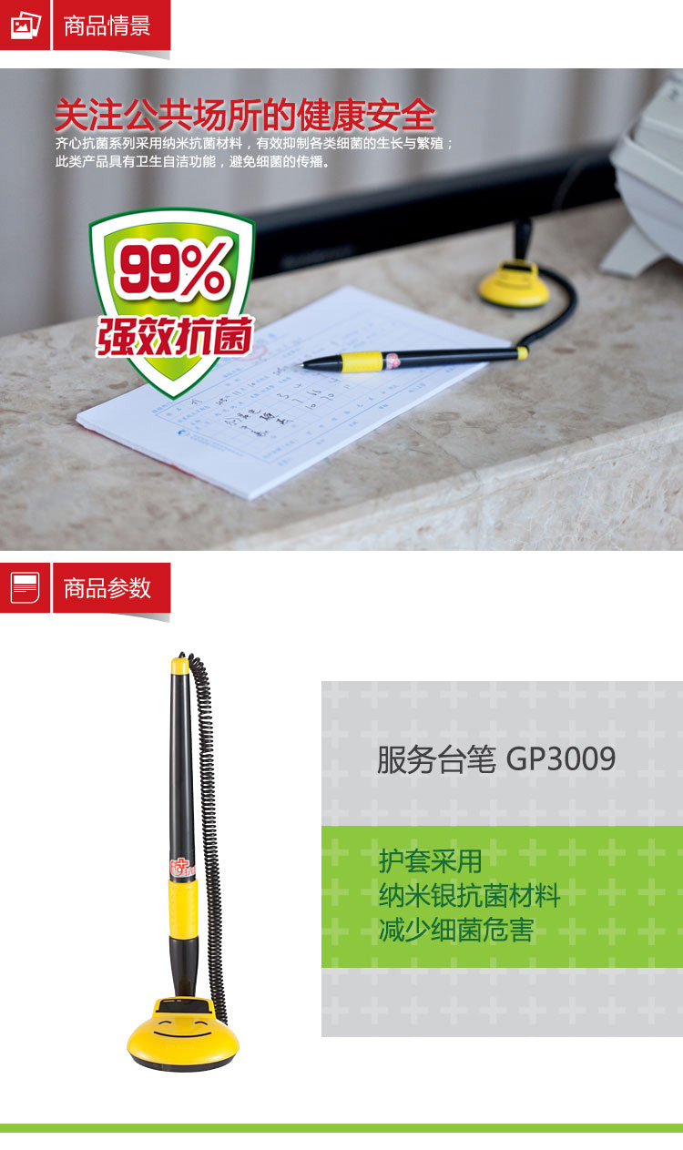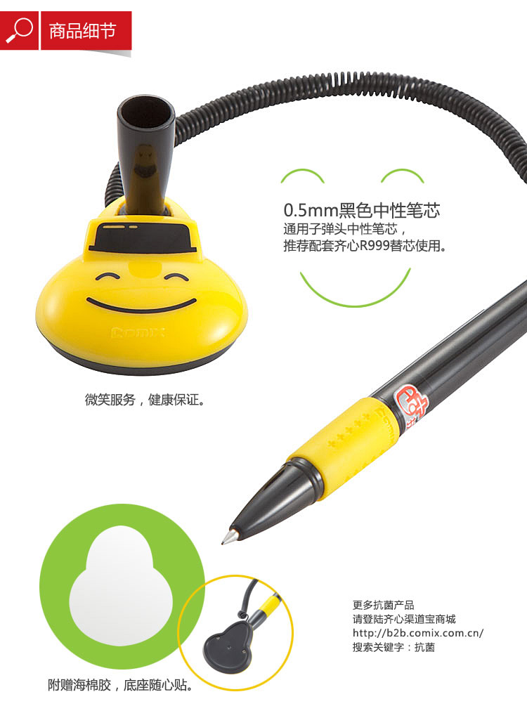 商品名称:齐心 台笔中性笔柜台桌面笔粘贴固定带绳中性笔银行黑色签字