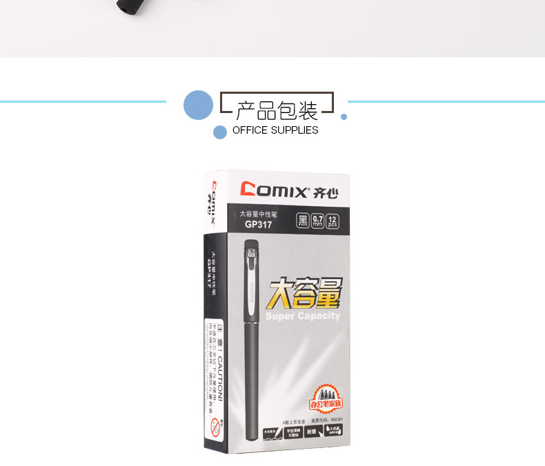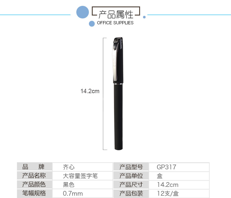 商品名称:齐心 0.7mm商务办公高档大容量签字笔 学生考试中性笔GP317