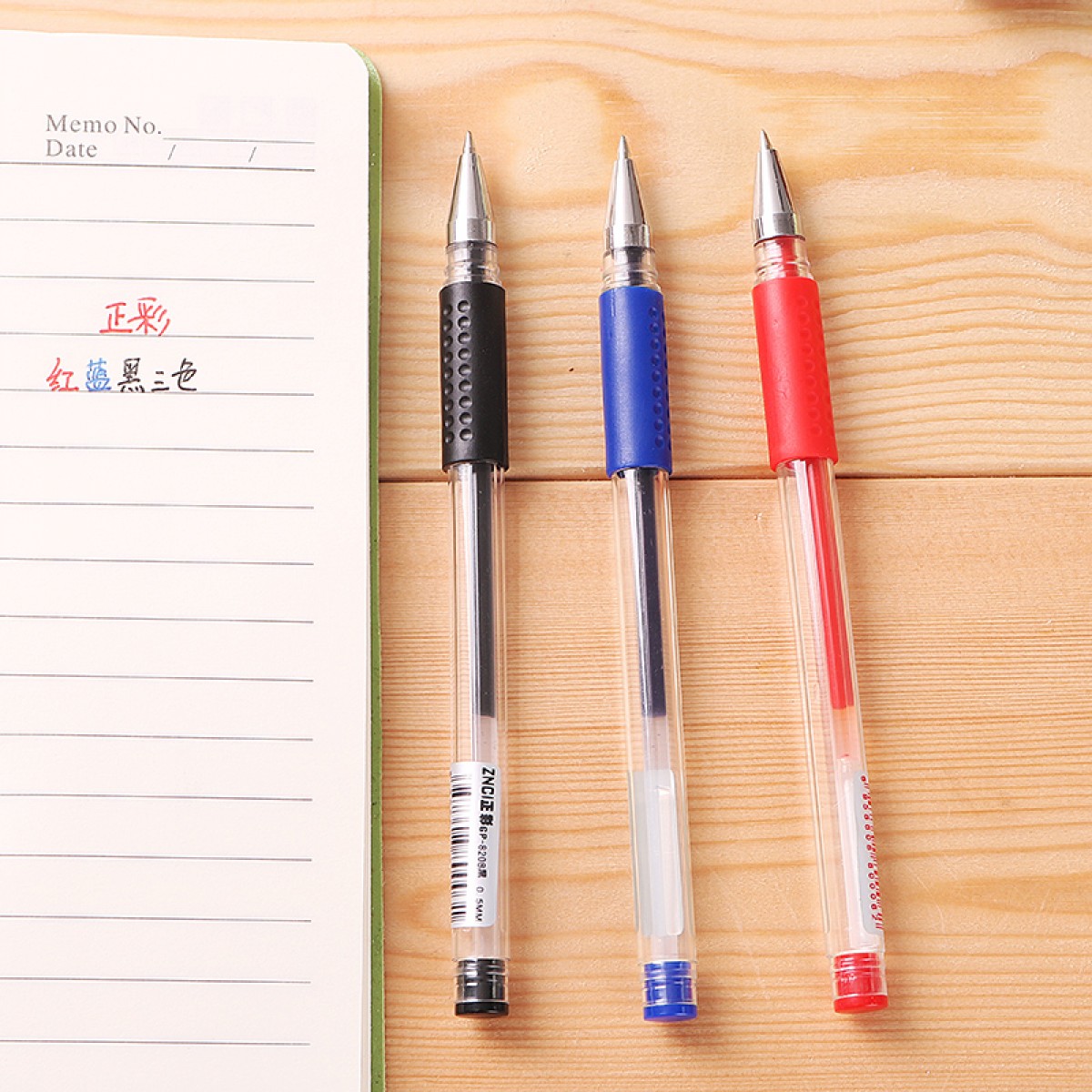 正彩 中性笔黑蓝红色笔芯水性笔0.5mm碳素签字笔黑色水笔