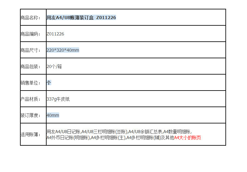 商品名称:西玛 财务办公A4账簿本配套226*320*40A4激光账簿装订盒 Z011226 财务会计用品记账凭证档案装订盒