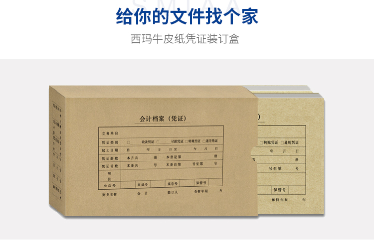 西玛 全A4横版凭证盒档案盒 单封口305*220*50mm会计凭证档案盒装订盒子 A4规格装订盒财务会计装订用品 HZ352