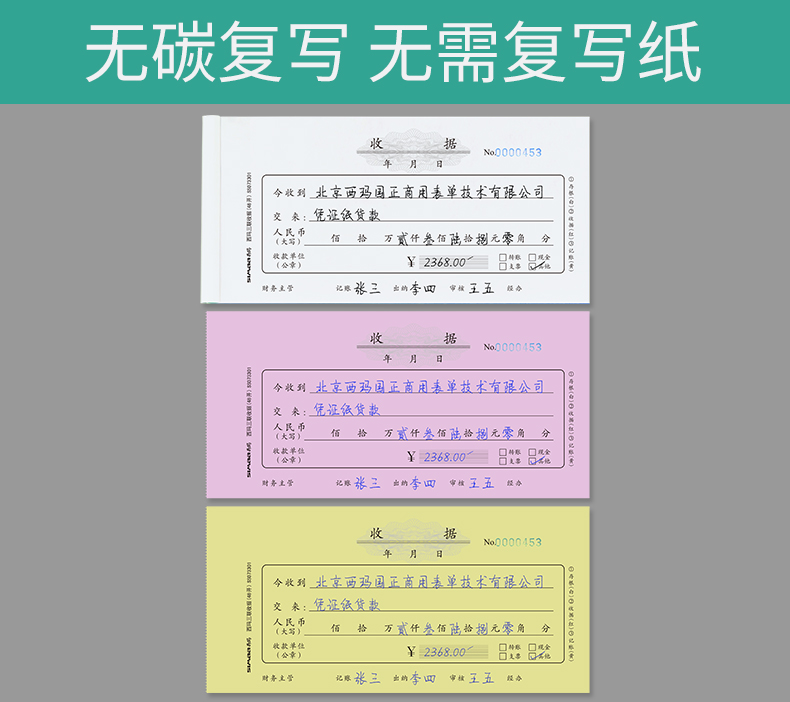 商品名称:西玛 收据三联财务用品票单据 单栏多栏 二联三联 23联收款收据 二联票据 无碳复写二联收据 SS073301