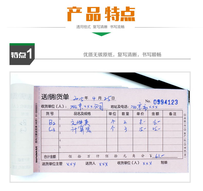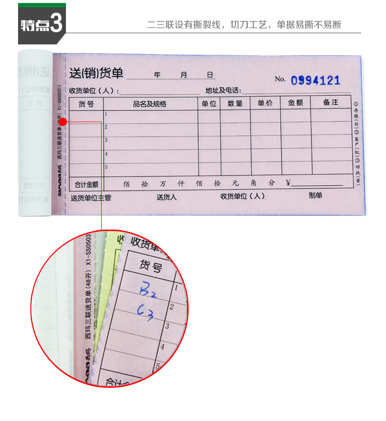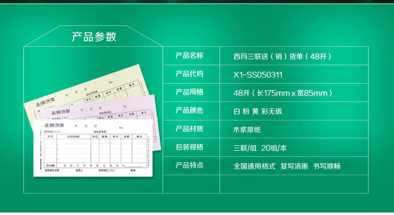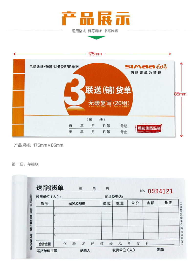 商品名称:西玛 A级三联送货单 销货单单据 无碳复写 横版销售单 48K 48开送货单 SS050311