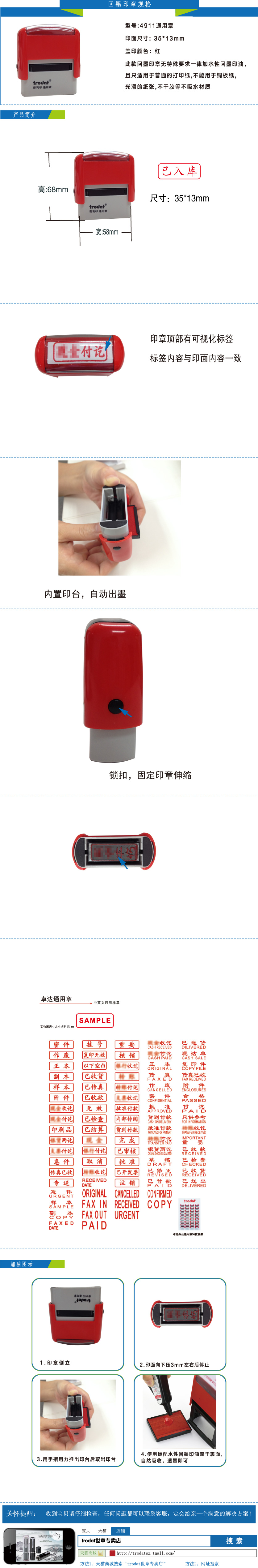 商品名称:Trodat/卓达 4911通用科目章/注册章/附件章/作废章/正副本章收付讫