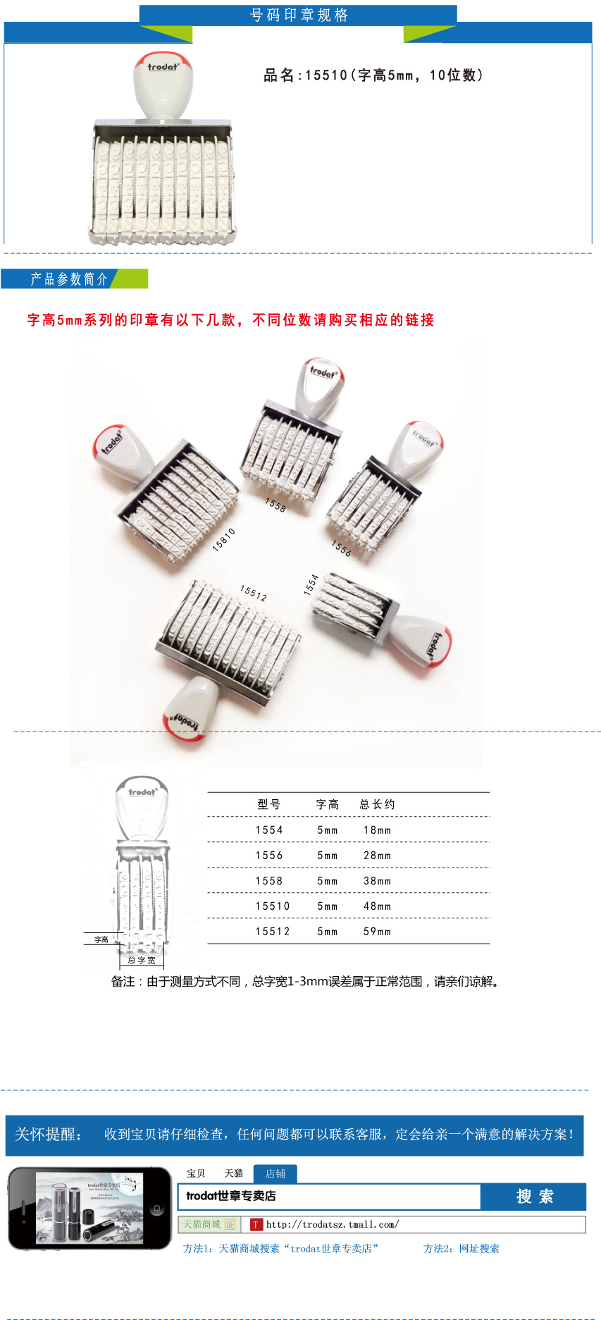 商品名称:Trodat/卓达 15510 字高5mm系列印章 转轮可调数字印章 号码章