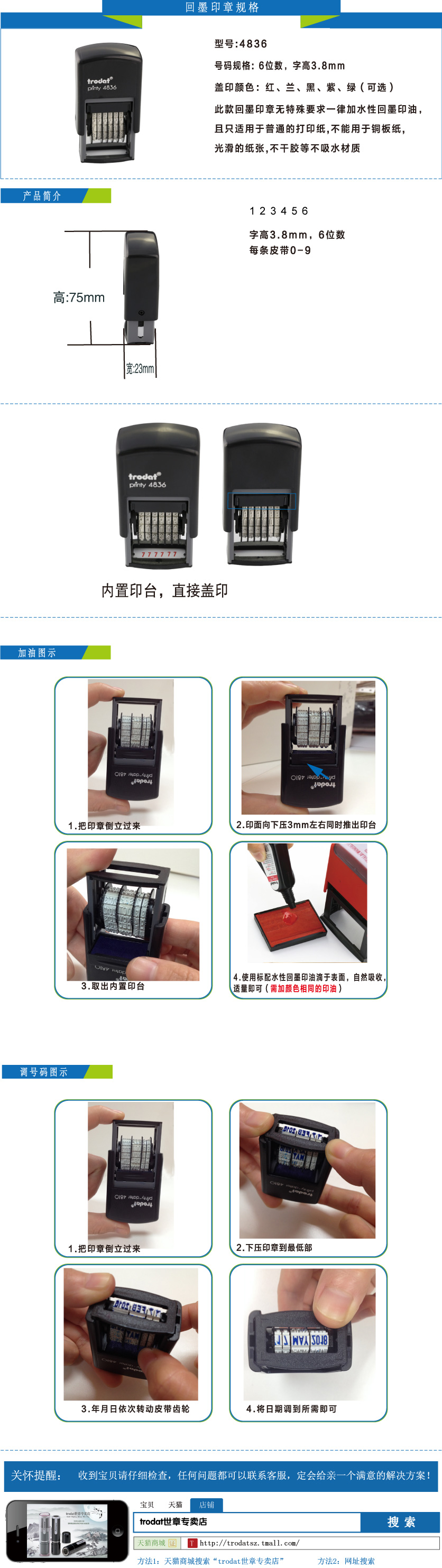 商品名称:Trodat/卓达 4836数字章号码章 转轮印章6位 数码章调数字印章