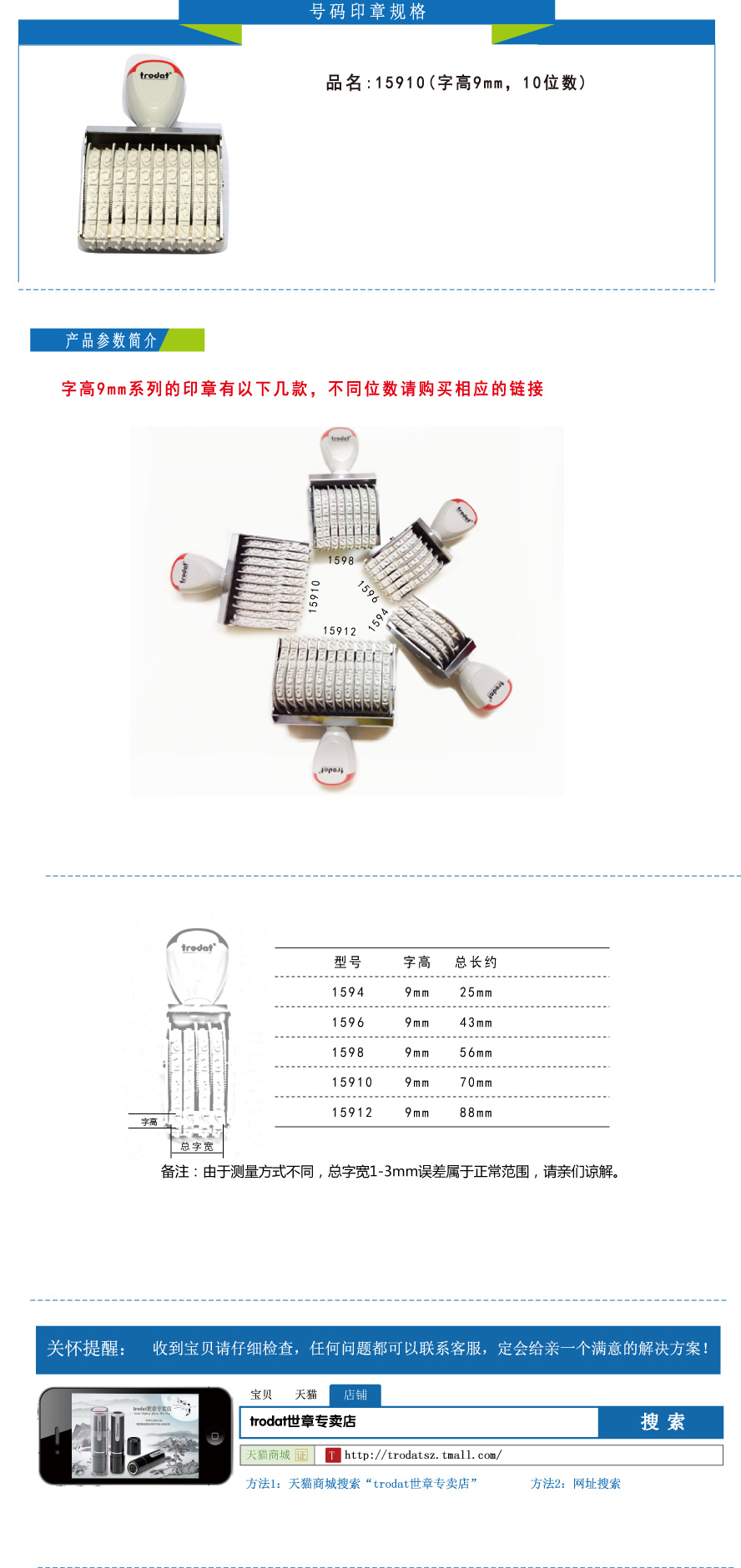 商品名称:Trodat/卓达 15910 字高9mm系列活字数字组合章号码章 转轮印章