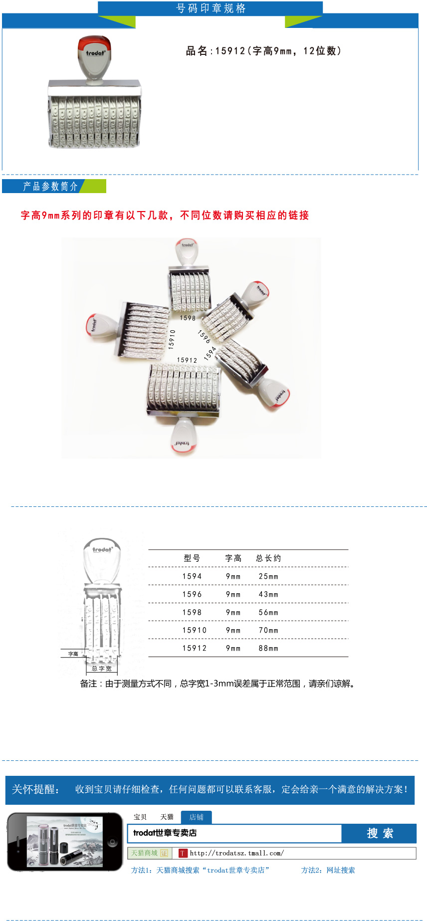 商品名称:Trodat/卓达 15912 字高9mm系列活字数字组合章号码章 转轮印章