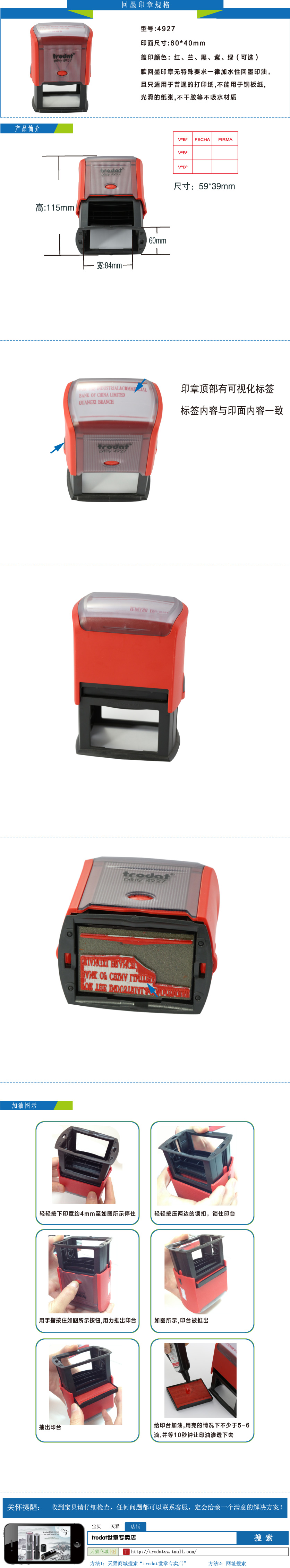 商品名称:Trodat/卓达 4927广告大印章 超大号自动回墨物料章电话号码章