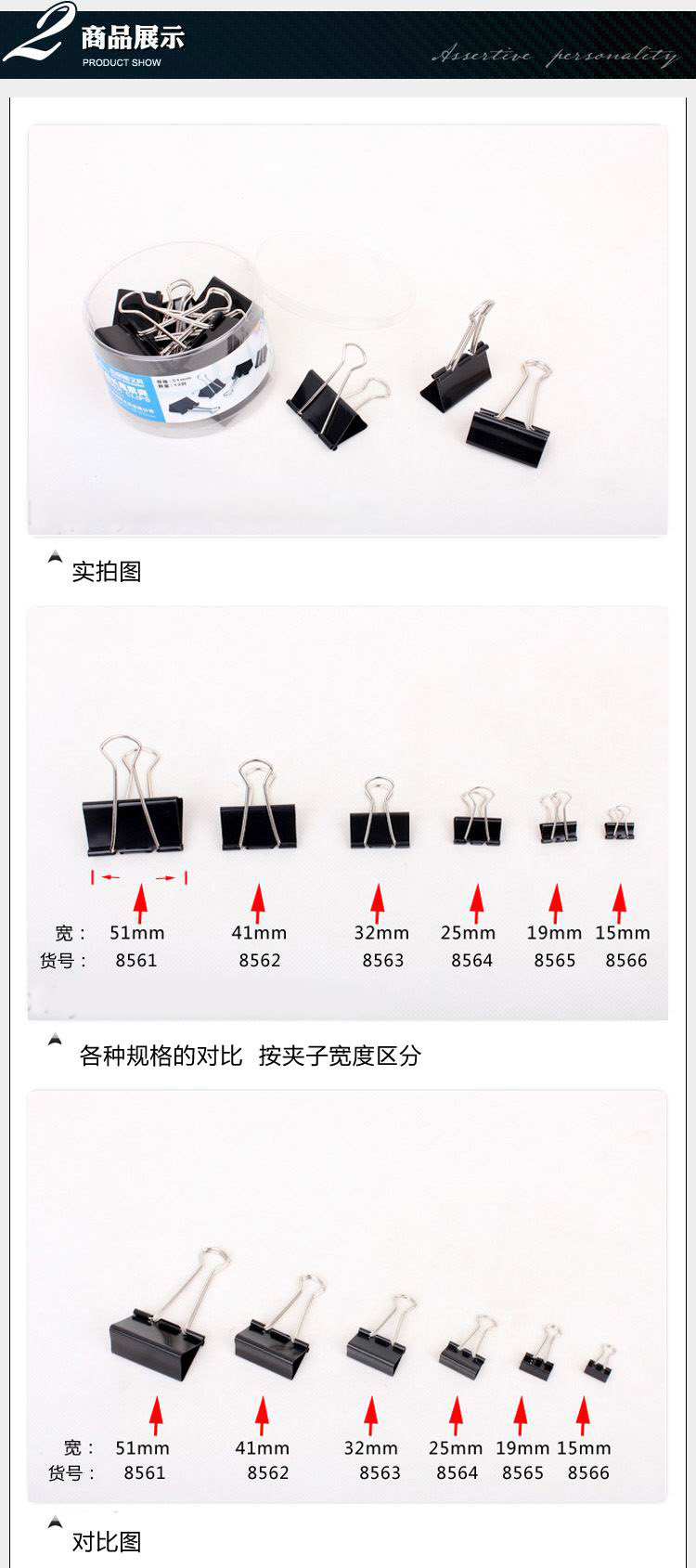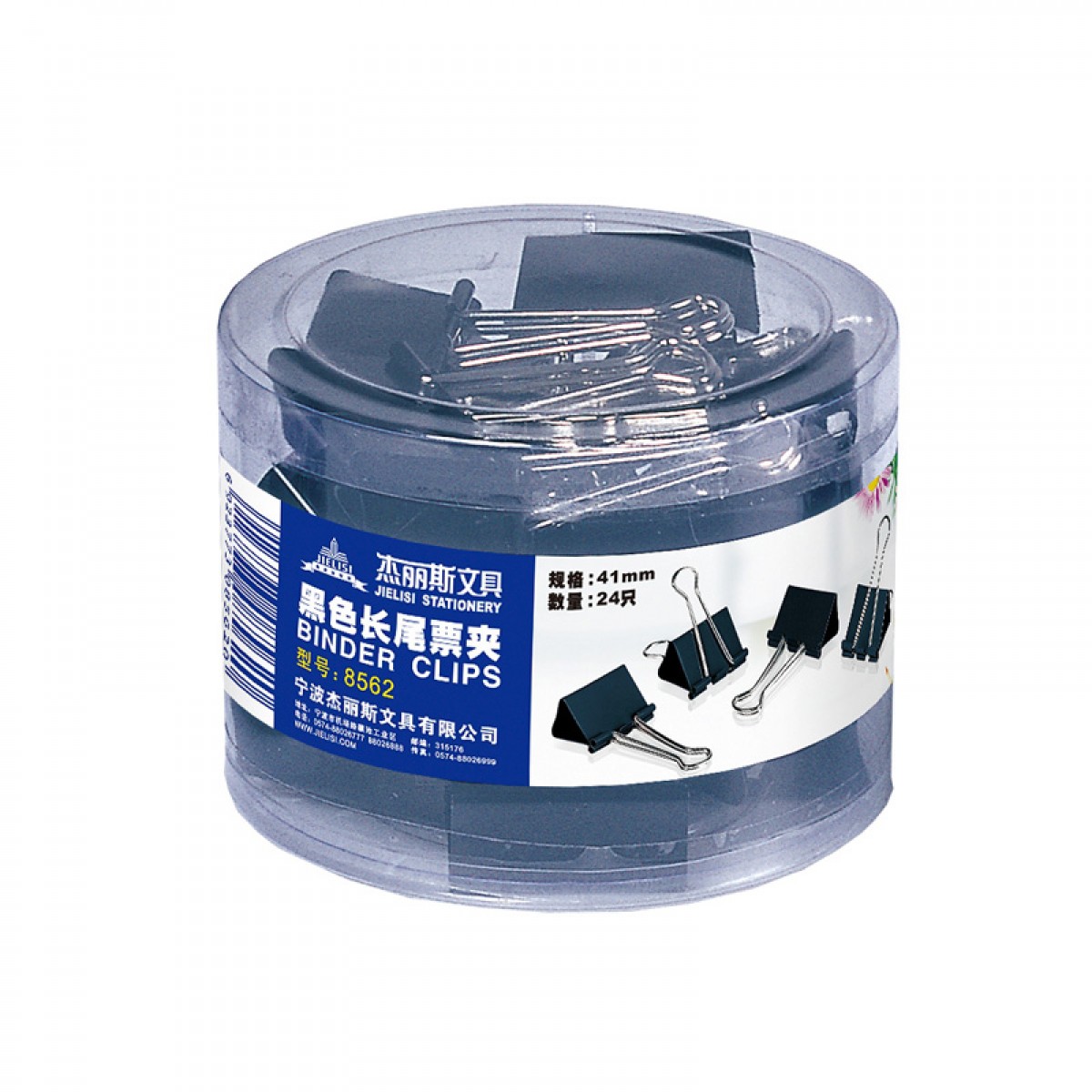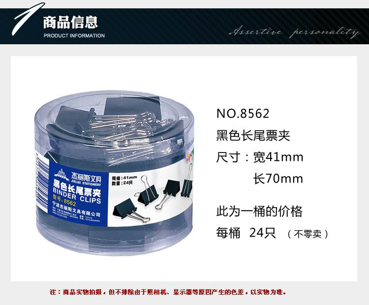 商品名称:杰丽斯黑色长尾夹8562 41mm 票据夹 长尾票夹 筒装24只