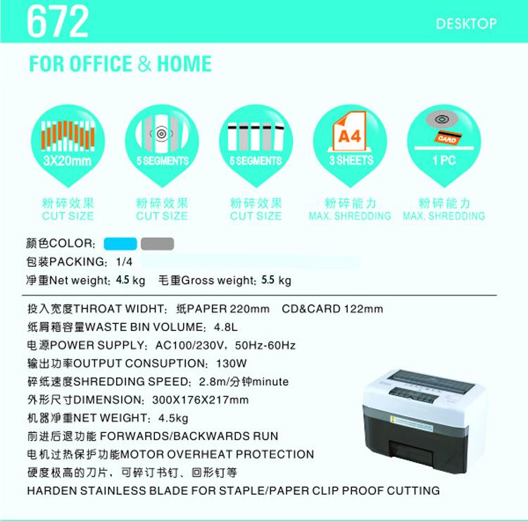 商品名称:杰丽斯 碎纸机 A4 段型电动迷你碎纸机 碎光盘信用卡 672
