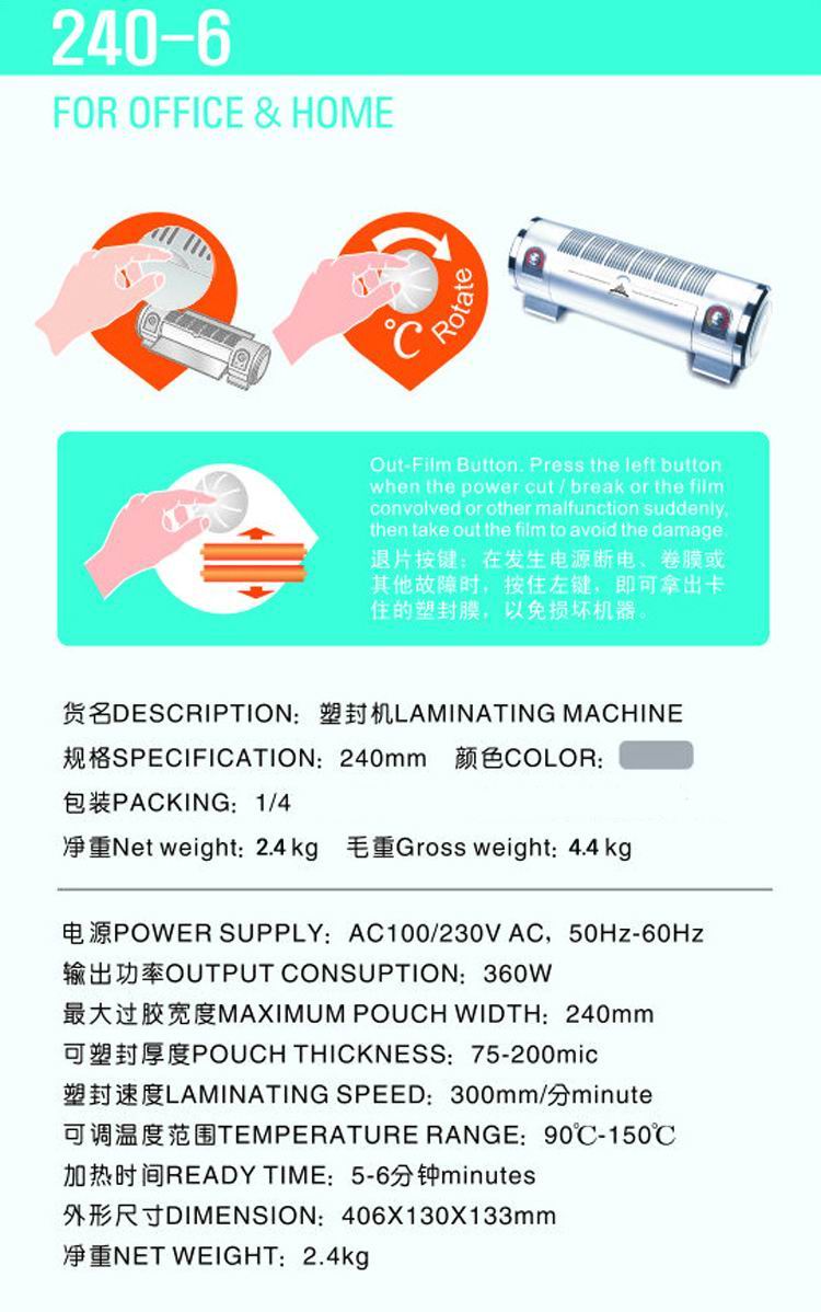 杰丽斯 塑封机 A4规格 过塑机 封塑机 塑封机 240-6