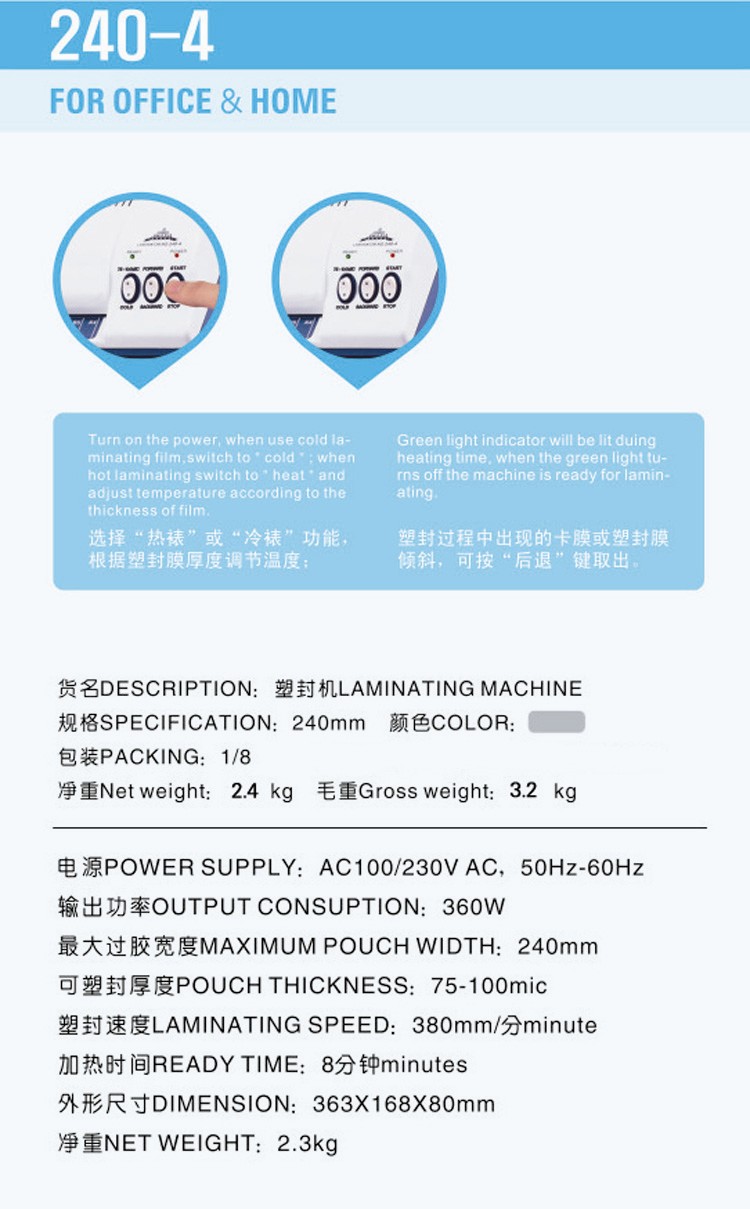 商品名称:杰丽斯 塑封机 A4规格 过塑机 封塑机 240-4