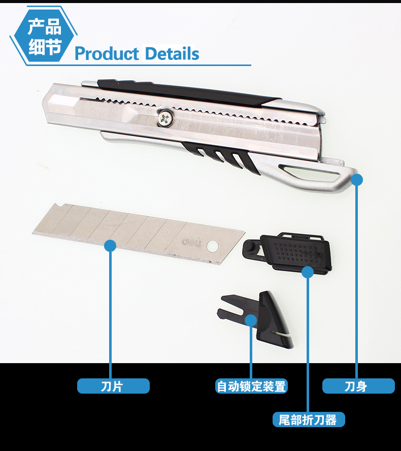 商品名称:得力 2057美工刀 金属美工刀 锌合金裁纸刀壁纸刀墙纸刀