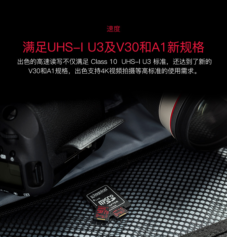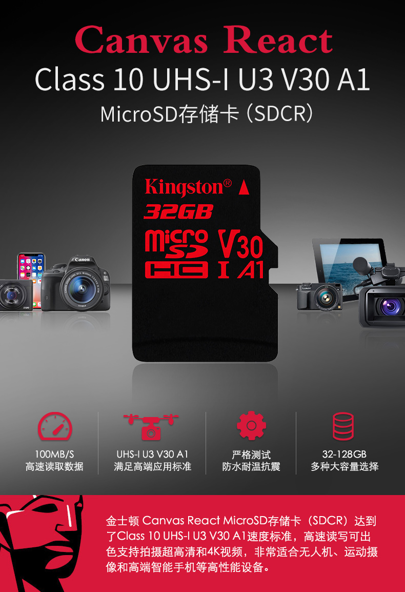 金士顿 SDCR TF卡 MicroSD卡 高速存储卡SDCR U3支持4K高清录制 32G