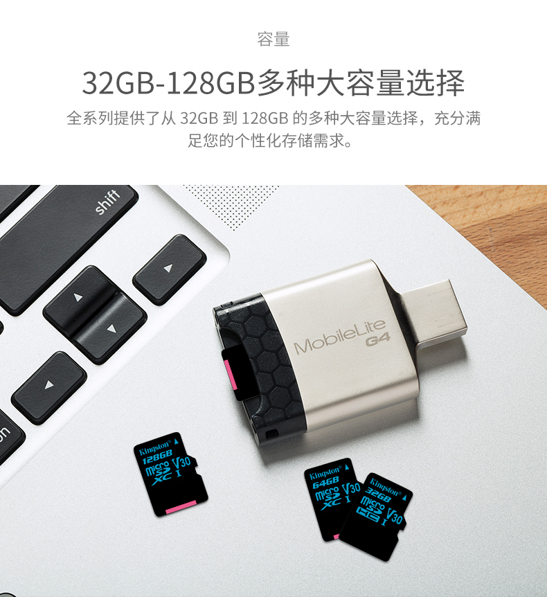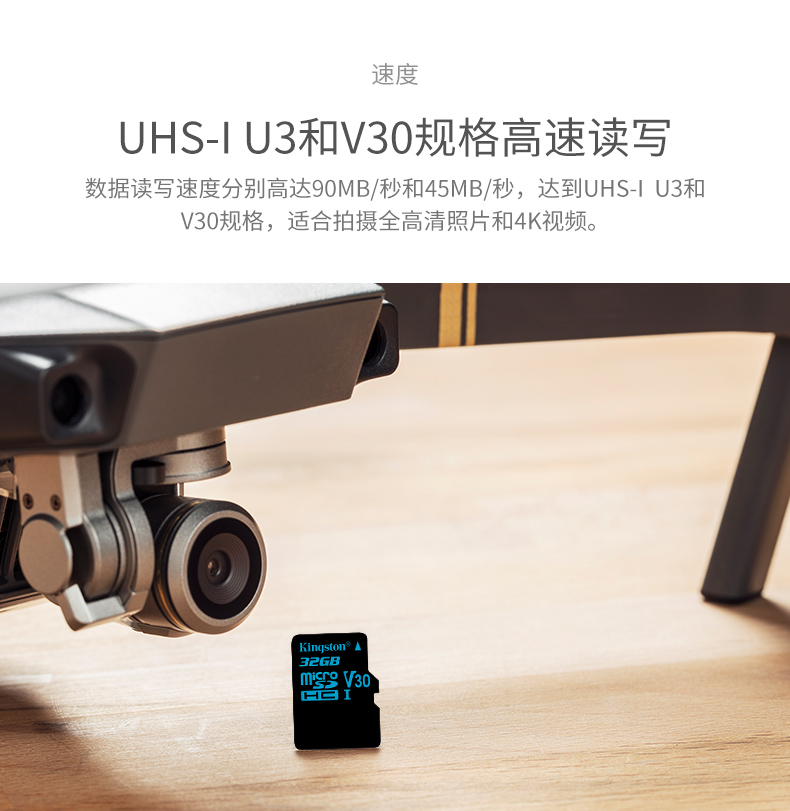 商品名称:金士顿 TF 蓝色读90M无人机存储卡U3支持4K 128G SDCG2/128G