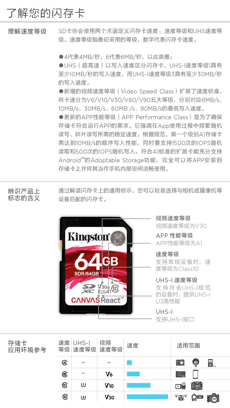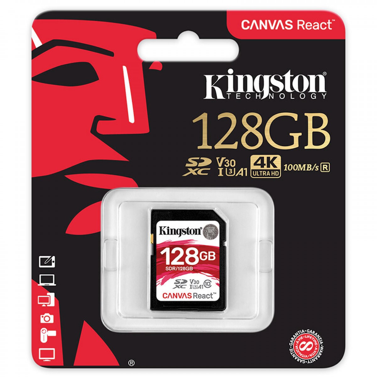 商品名称:金士顿 SDXC卡SDR 存储卡相机内存卡U3支持4K读100M 128G