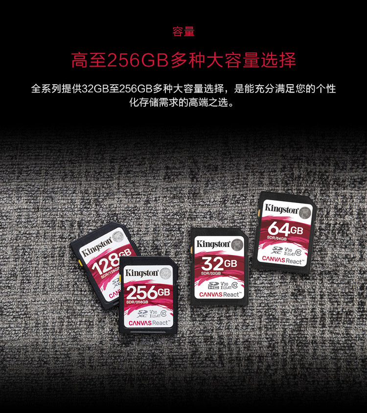 金士顿 SDXC卡SDR 存储卡相机内存卡U3支持4K读100M 128G