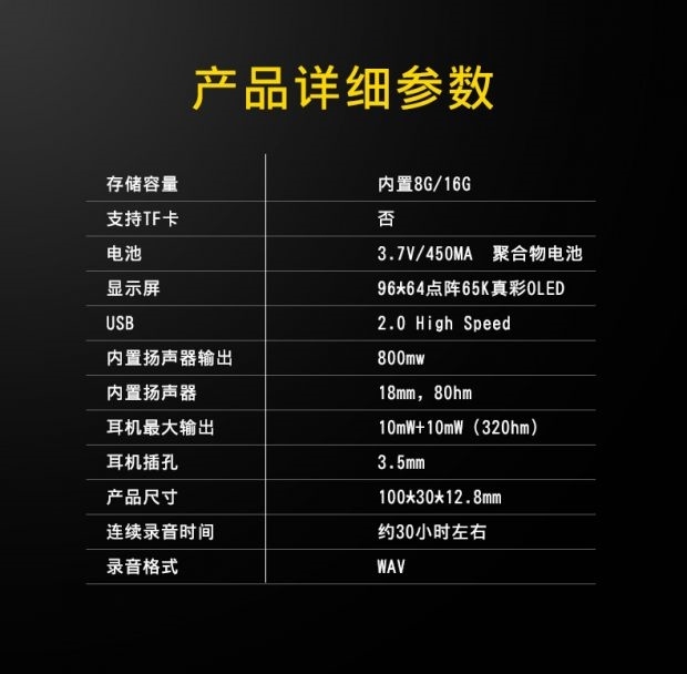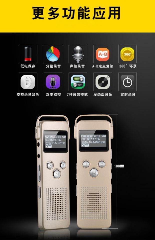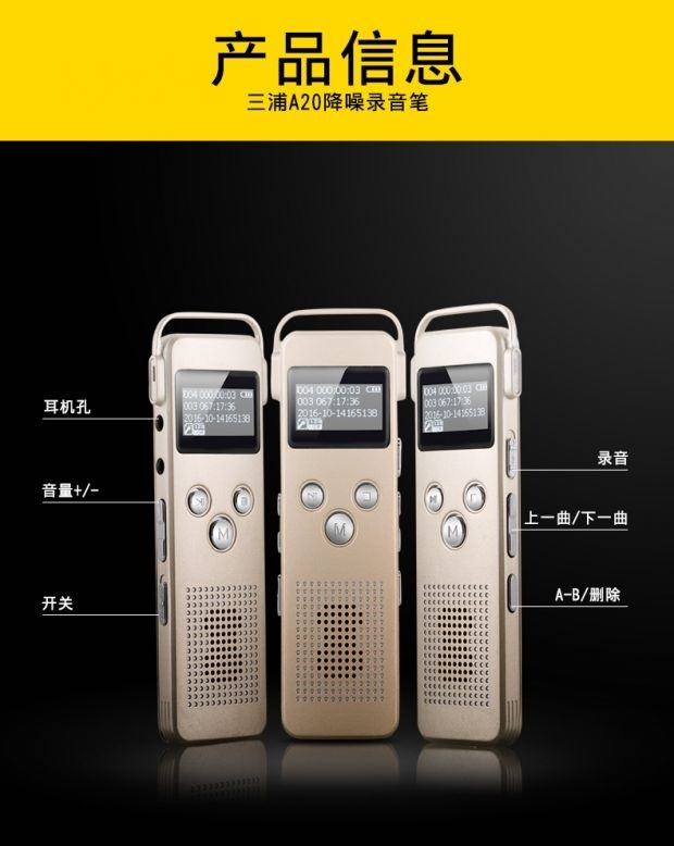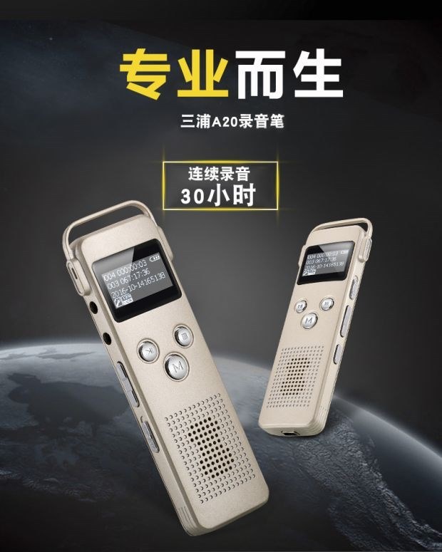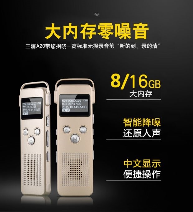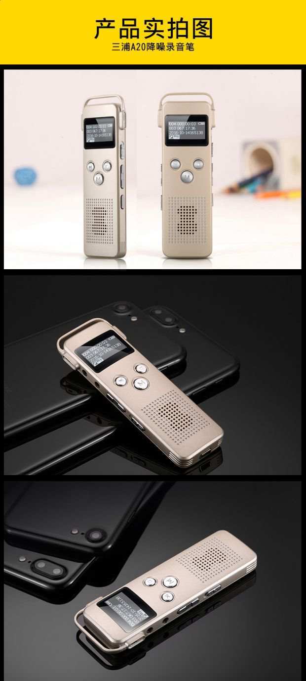 商品名称:三浦 录音笔 远距离 降噪 专业多功能录音器 mp3播放器 金色 A20 8G
