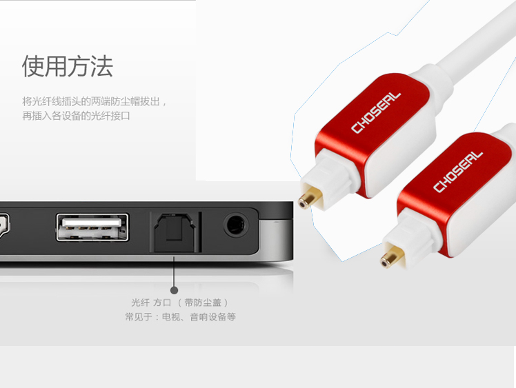 商品名称:Choseal/秋叶原 数字光纤音频线方对方5.1声道SPDIF光纤线