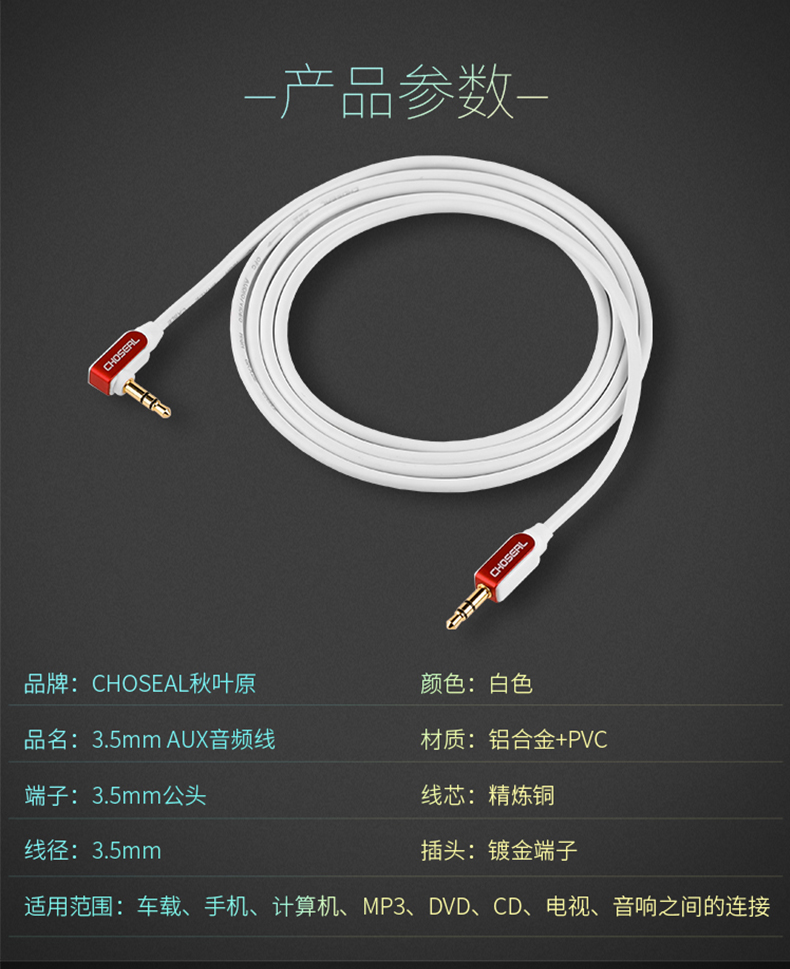 商品名称:秋叶原 AUX车用立体声音频线3.5mm镀金头汽车手机电脑音响连接线