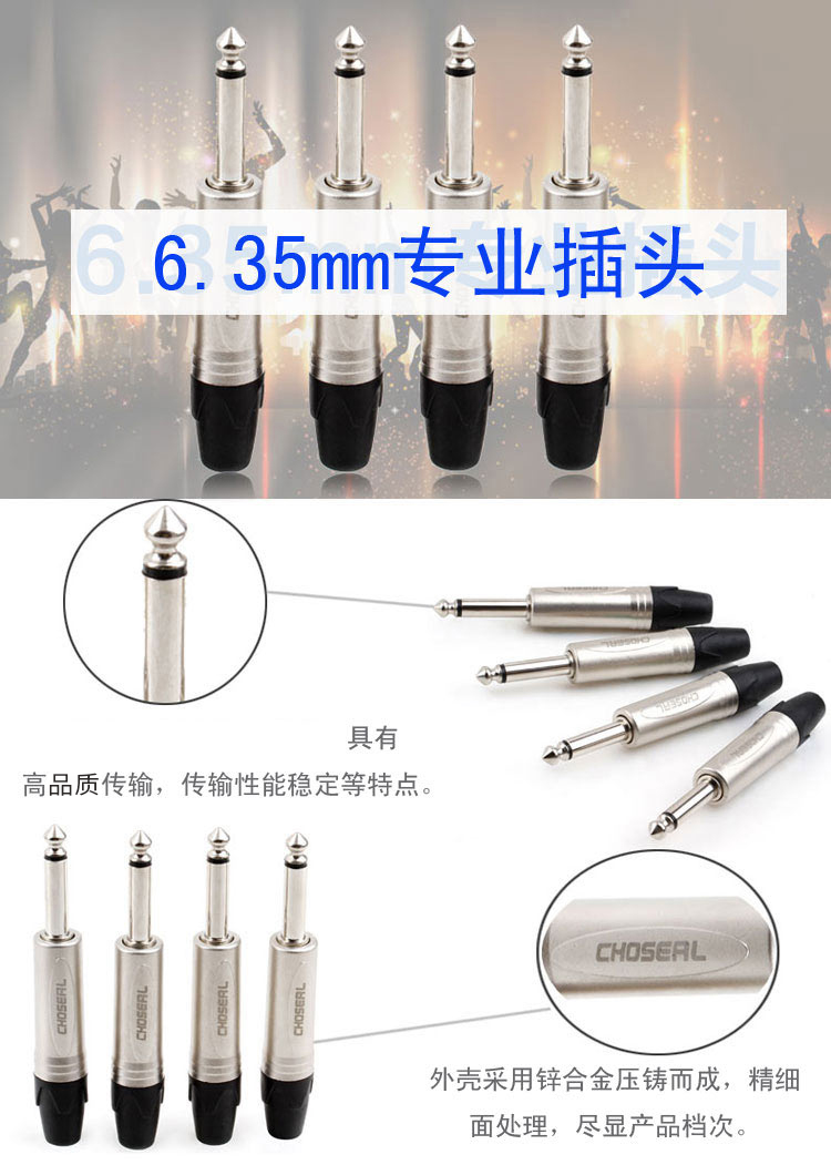 商品名称:Choseal/秋叶原 话筒插头TS大二芯 6.35插头 6.5插头OD4-7mm QD2006