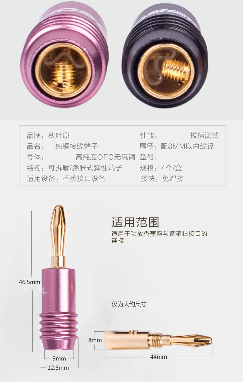 商品名称:秋叶原 功放音箱插头香蕉头音响喇叭线接头4个/盒 QS6033