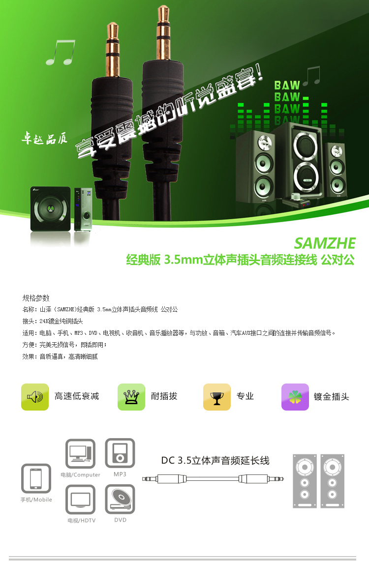 商品名称:山泽 经典版 3.5mm立体声插头音频连接线 公对公 YPB-806