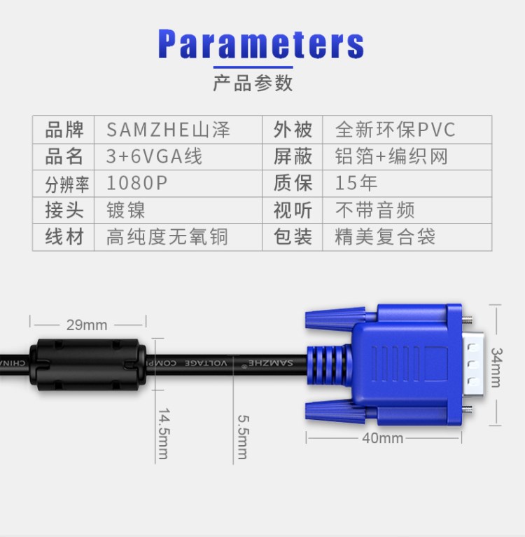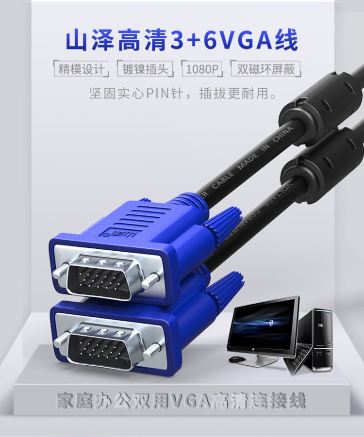 商品名称:山泽 高纯度无氧铜VGA线公对公 电脑连接投影仪转换线5/15/20米