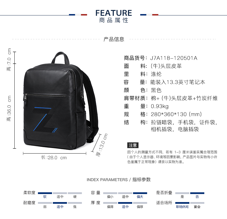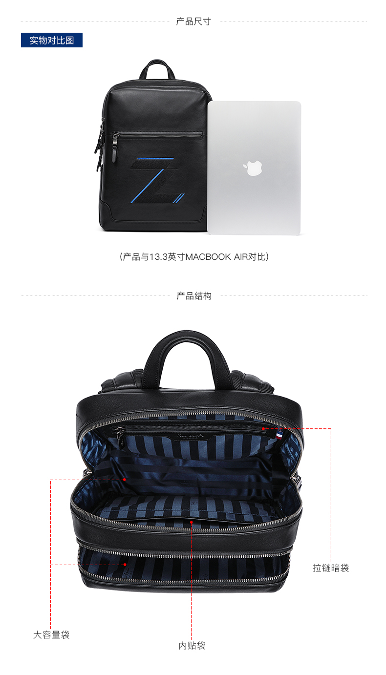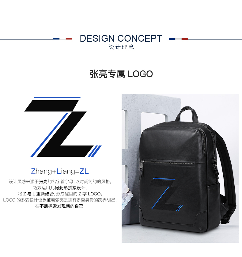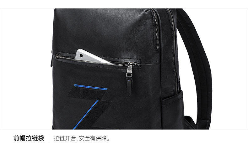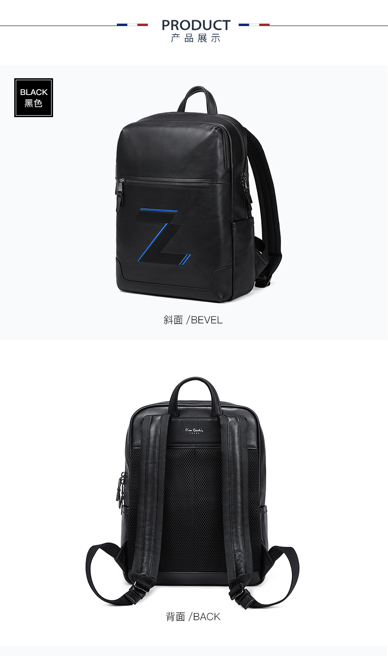 商品名称:皮尔卡丹 真皮双肩包男 张亮联名同款男士背包 绣花背包男 双肩包