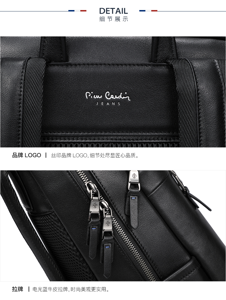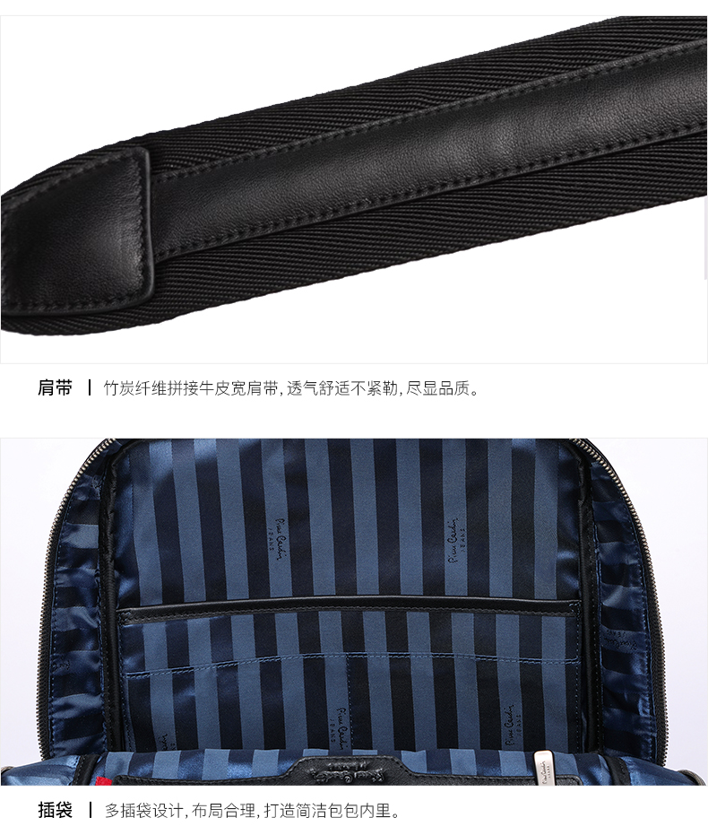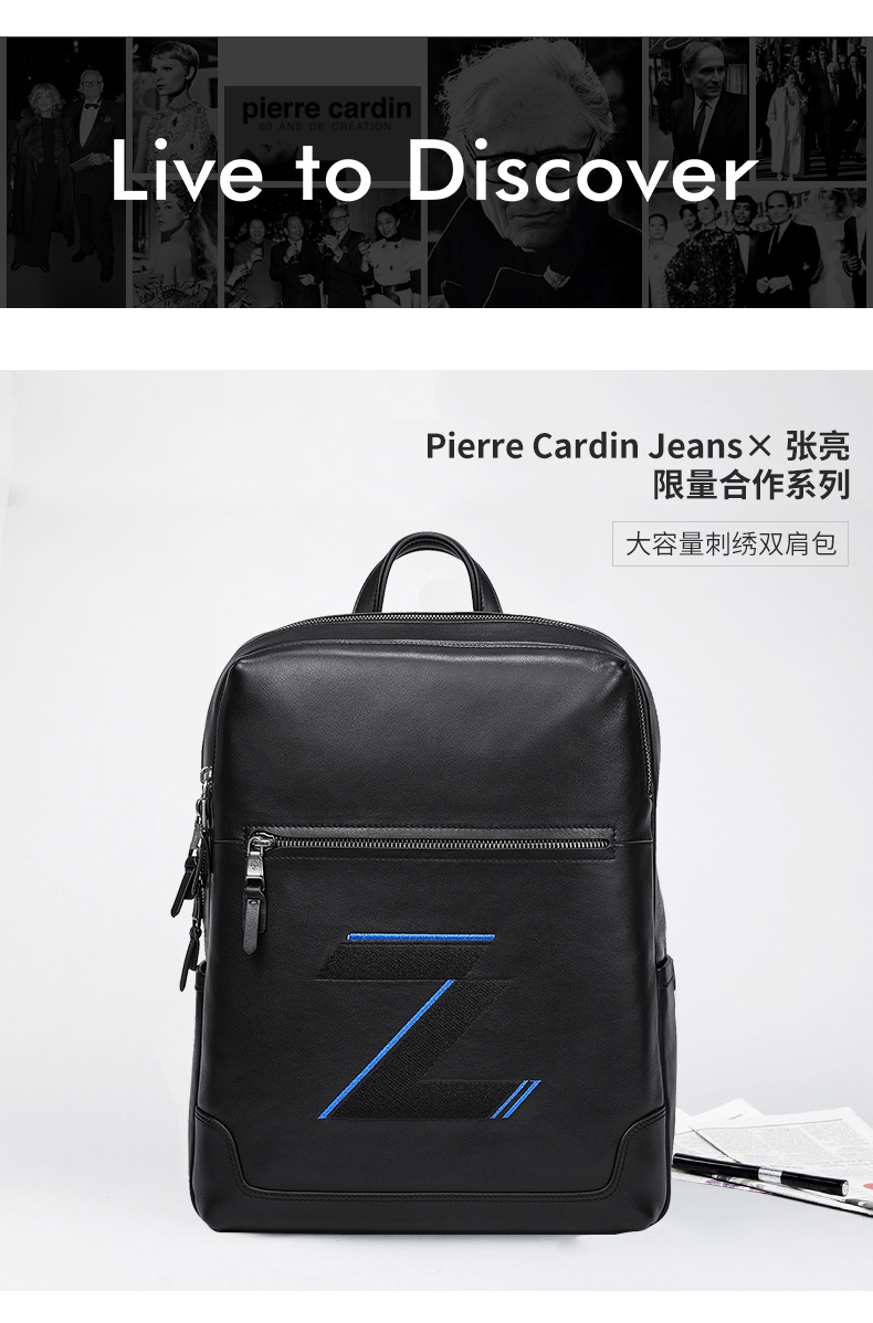 皮尔卡丹 真皮双肩包男 张亮联名同款男士背包 绣花背包男 双肩包