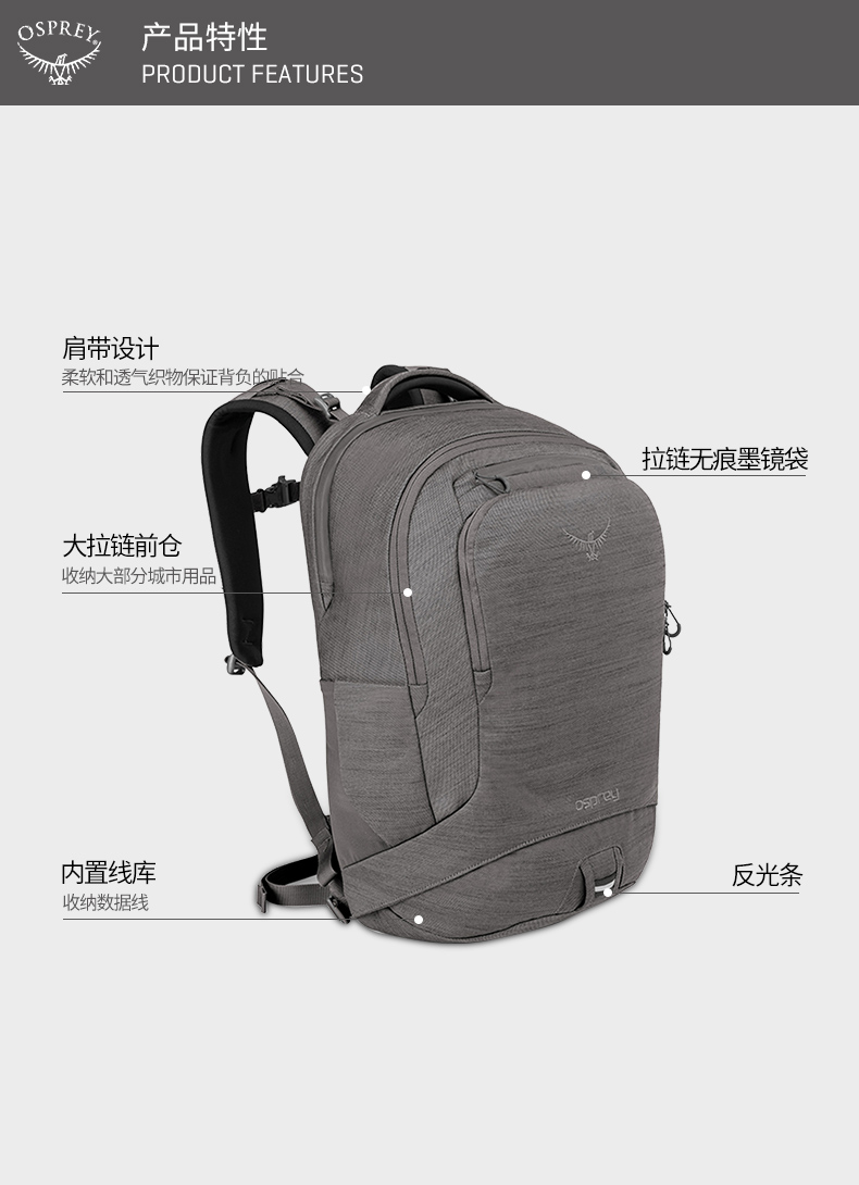 商品名称:OSPREY Cyber赛博22升运动休闲城市包时尚背包电脑双肩包