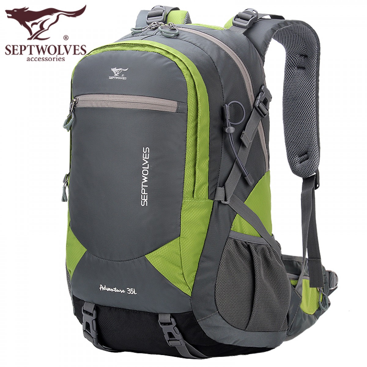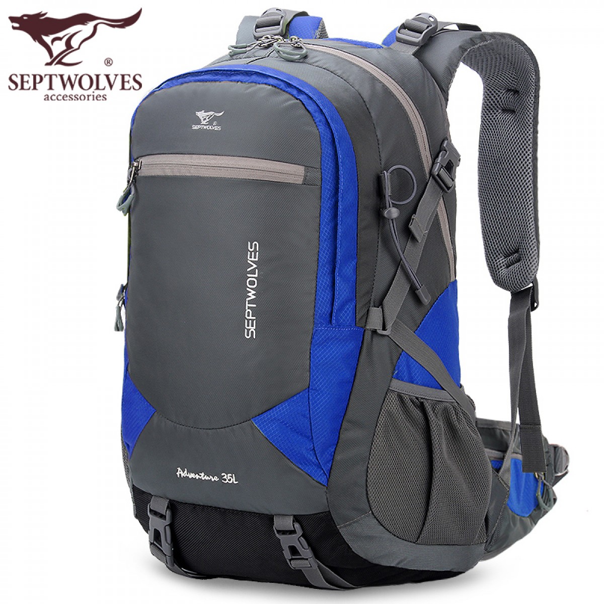七匹狼登山包双肩男 防水运动背包双肩包男女户外野营徒步旅行包