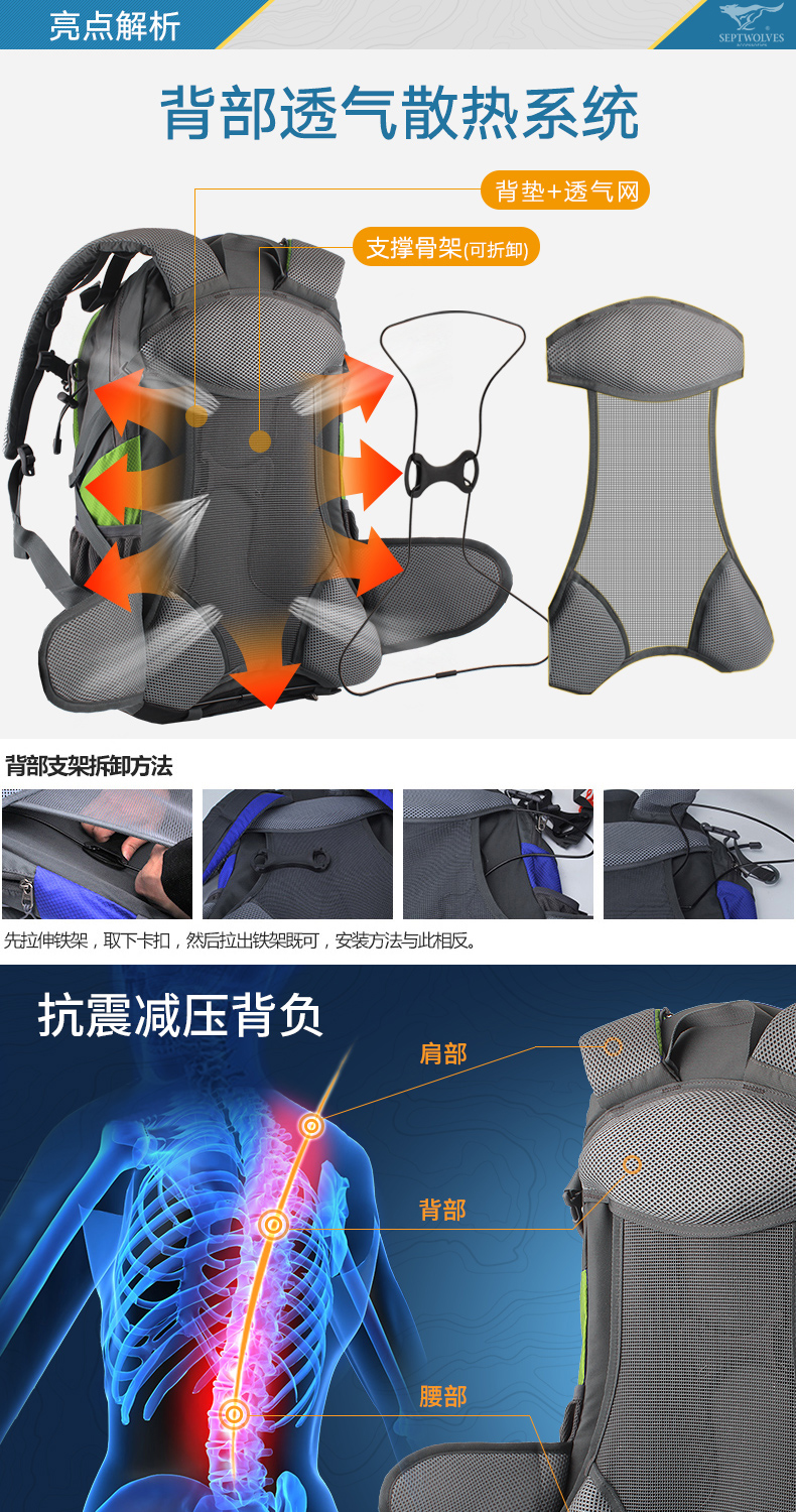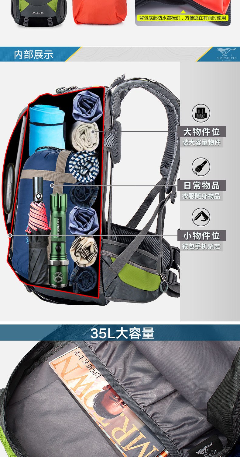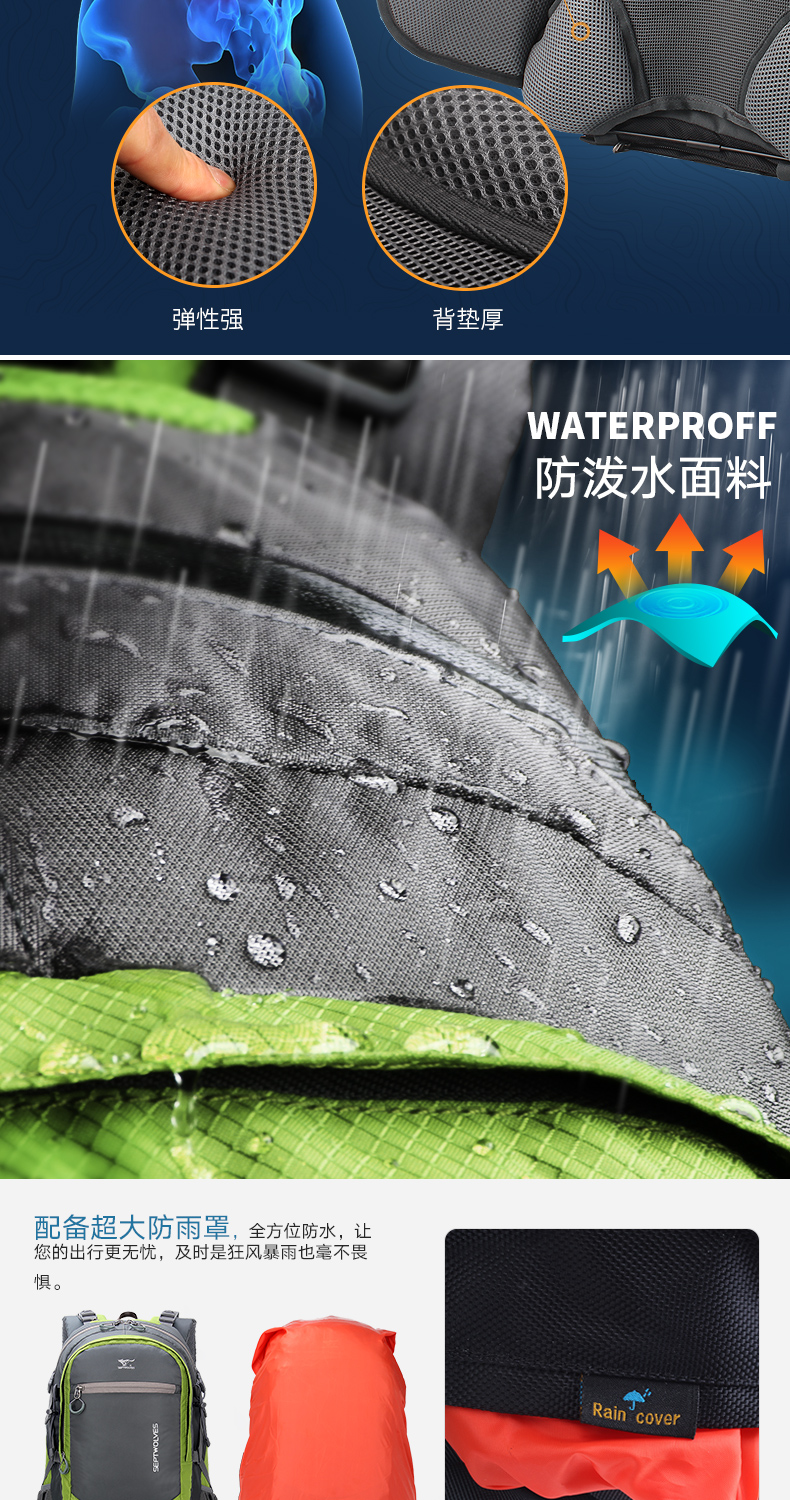 商品名称:七匹狼登山包双肩男 防水运动背包双肩包男女户外野营徒步旅行包